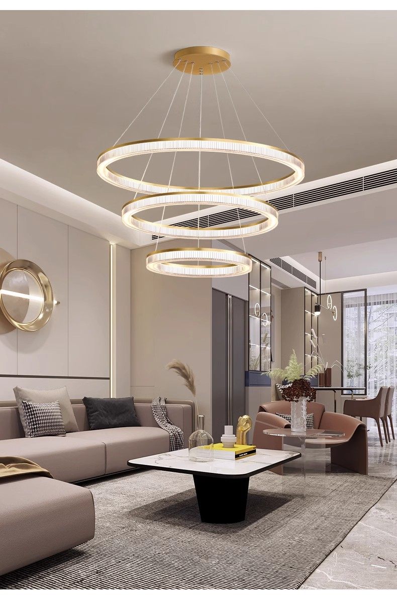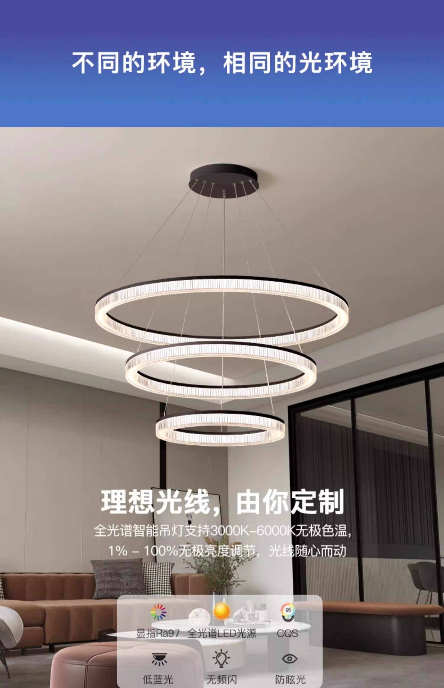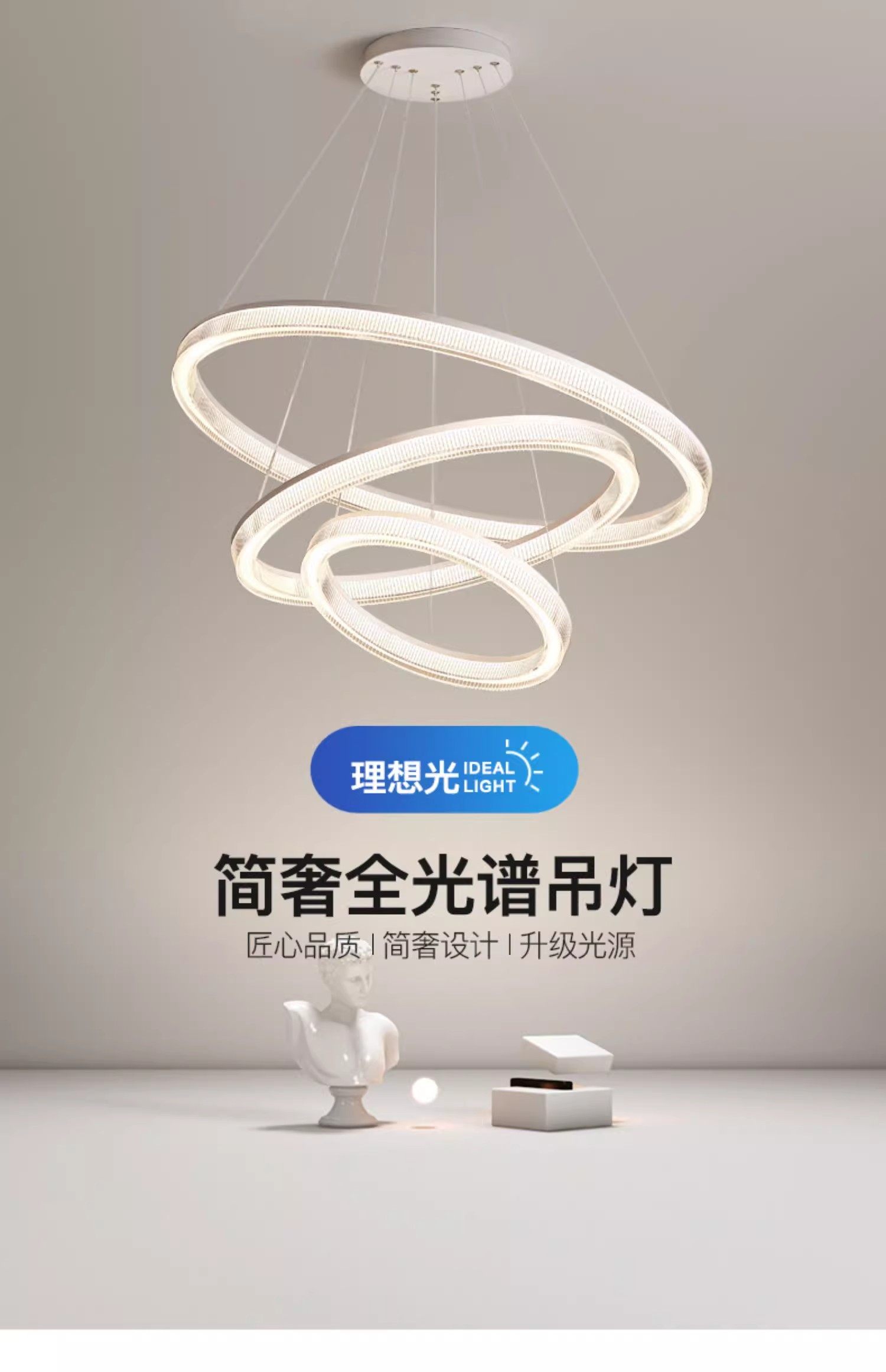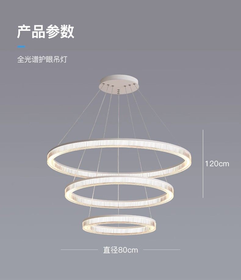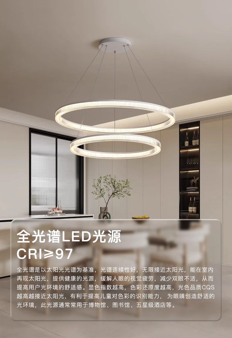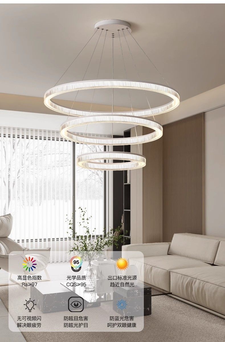Living Room Chandelier Full Spectrum Eye Protection Lamp Modern Simple Nordic Fashion High Cri Double Round Minimalist Dining Room Chandelier