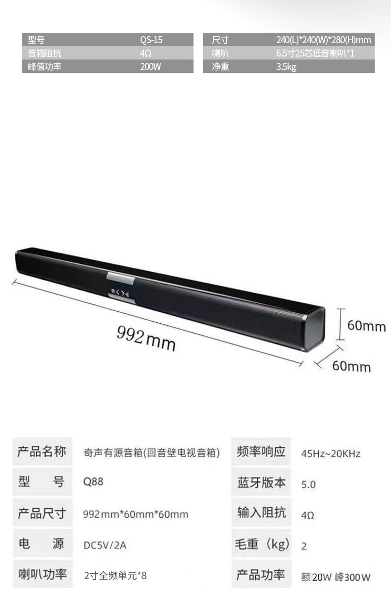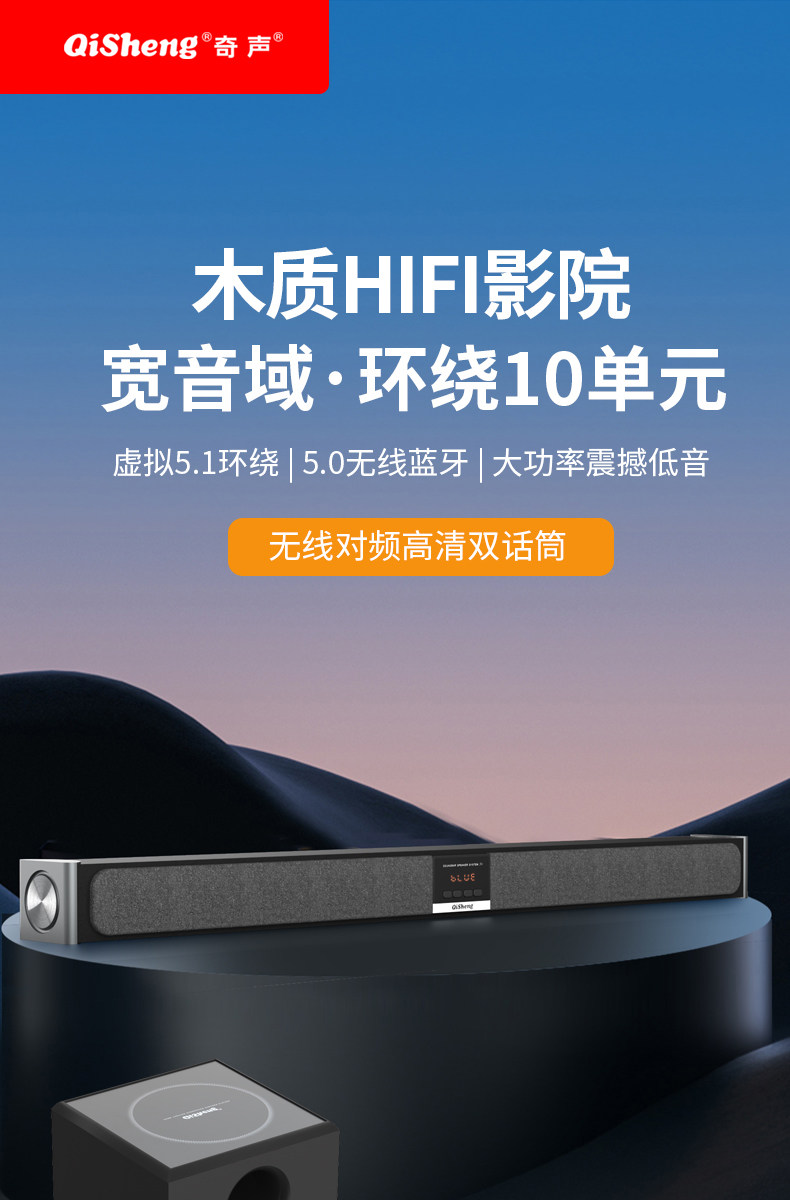 Qisheng Soundbar Speaker Karaoke Home Living Room Tv Projector Speaker Bluetooth Subwoofer Ktv Home Theater