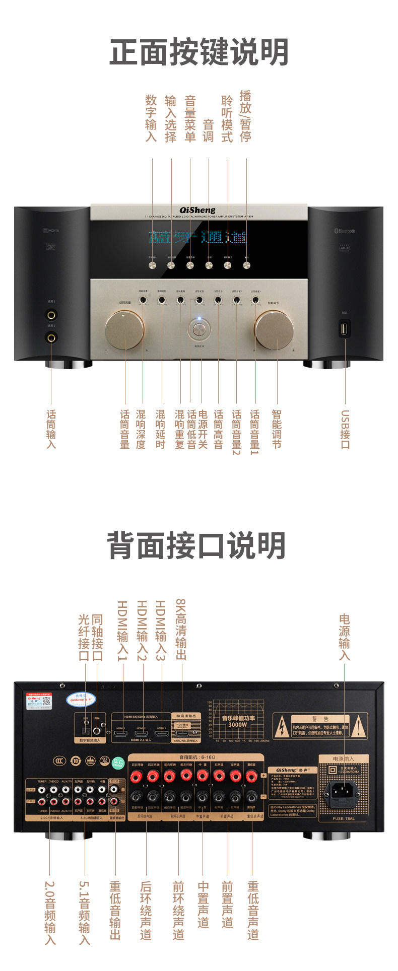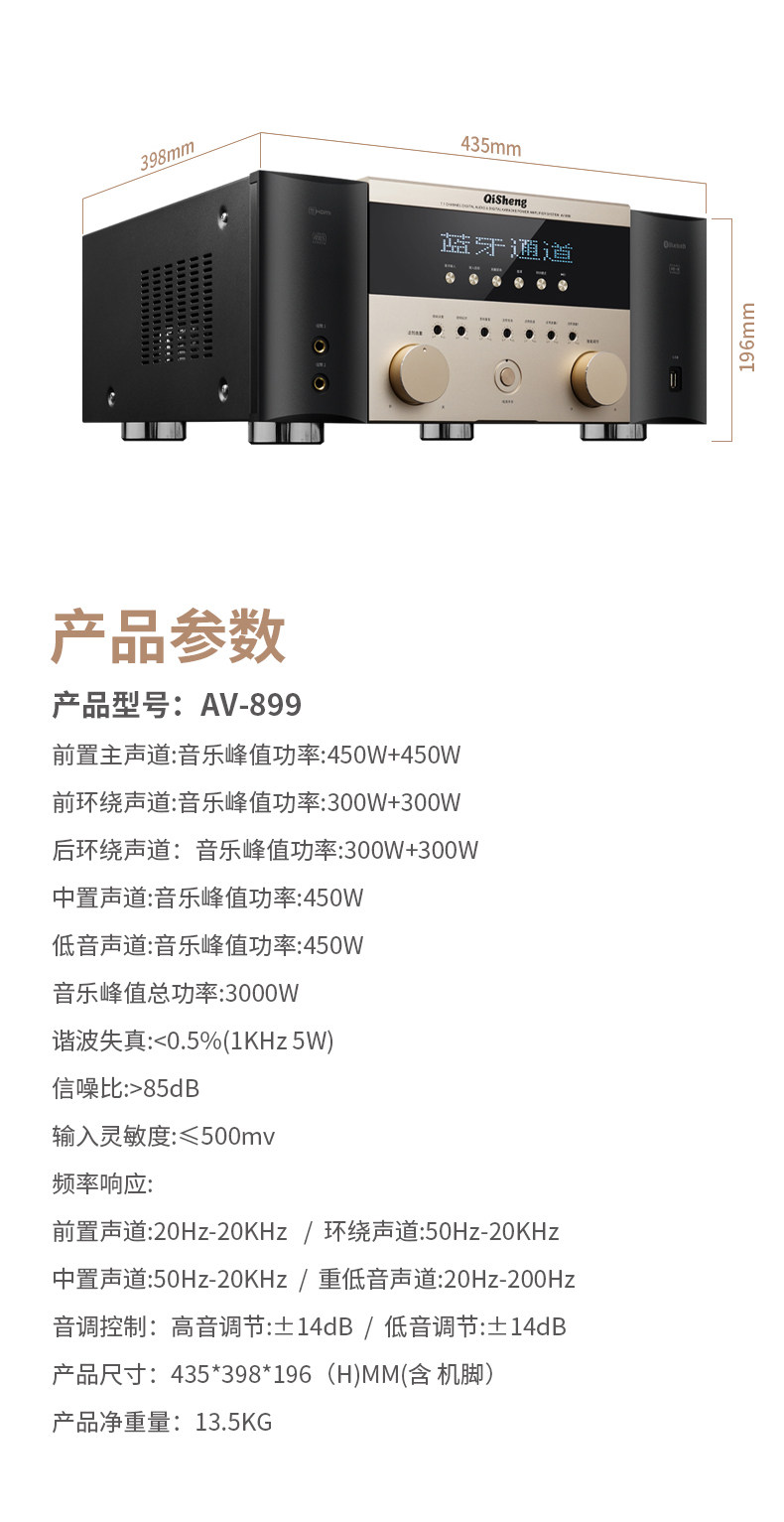 Qisheng Power Amplifier 7.1 Home Theater Home High-Power Professional Bluetooth Fever Hifi Subwoofer Ktv Audio