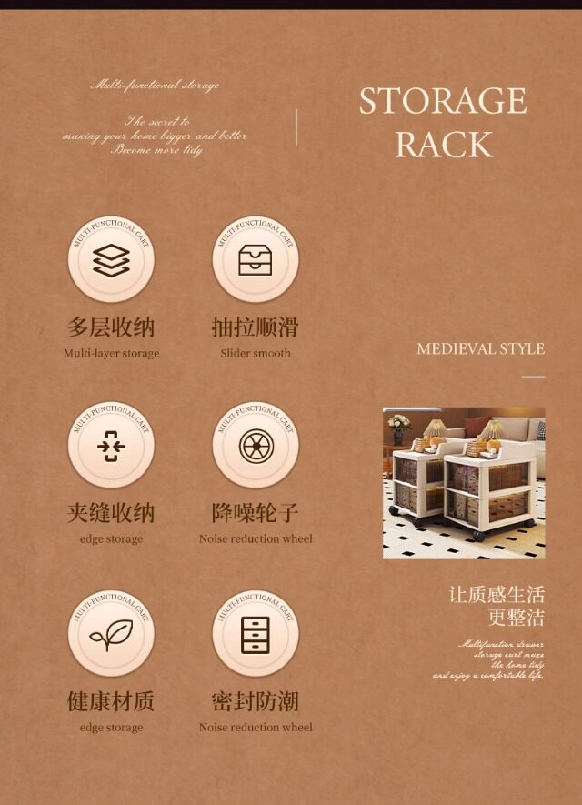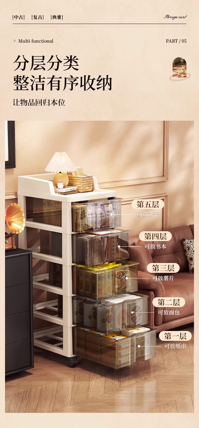 Trolley Storage Rack Snack Storage Cabinet Living Room Office Under-Desk Storage Cabinet Drawer-Type Floor-Standing Storage Cabinet
