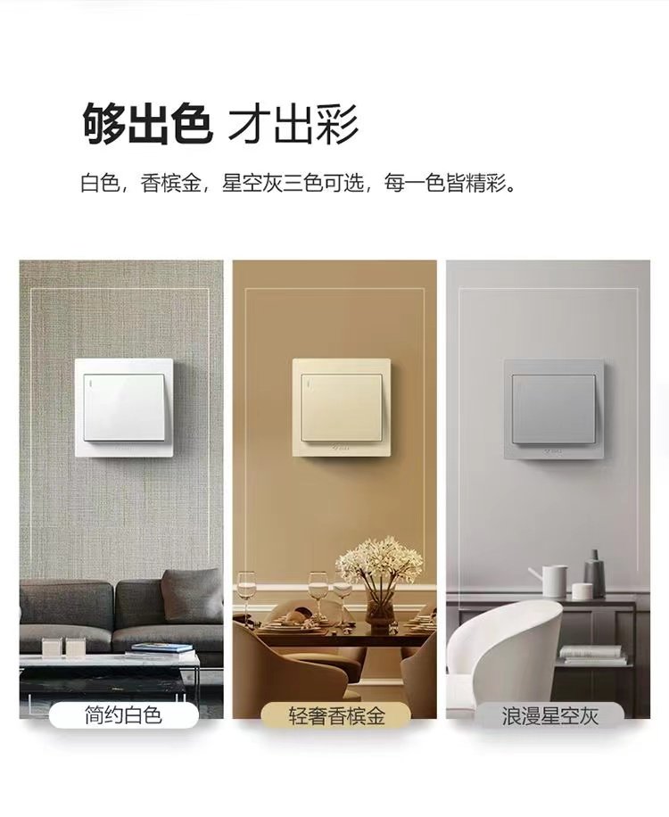 | Color Classification | Positive Five Holes,Inclined Five Holes,A Single Control,One Dual Control/-,Two-Position Single Control,Two-Position Dual Control,Three-Position Single Control,Three-Position Dual Control,Four Single Controls,Four-Digit Dual Control,One Multi-Controller,Two-Position Multi-Control,Seven Holes,One Hole with Five Holes,16A Air Conditioning Plug,16A Air Conditioning Plug with Switch,16A Five Holes,Five-Hole USB,Computer Plug,Tv Plug,Phone Plug,Computer Tv Plug,Dual Computer Plug,Category 6 Computer Plug,Category 6 Computer Tv Plug,Category 6 Double Computer Plug,Outlet Hole,Whiteboard |