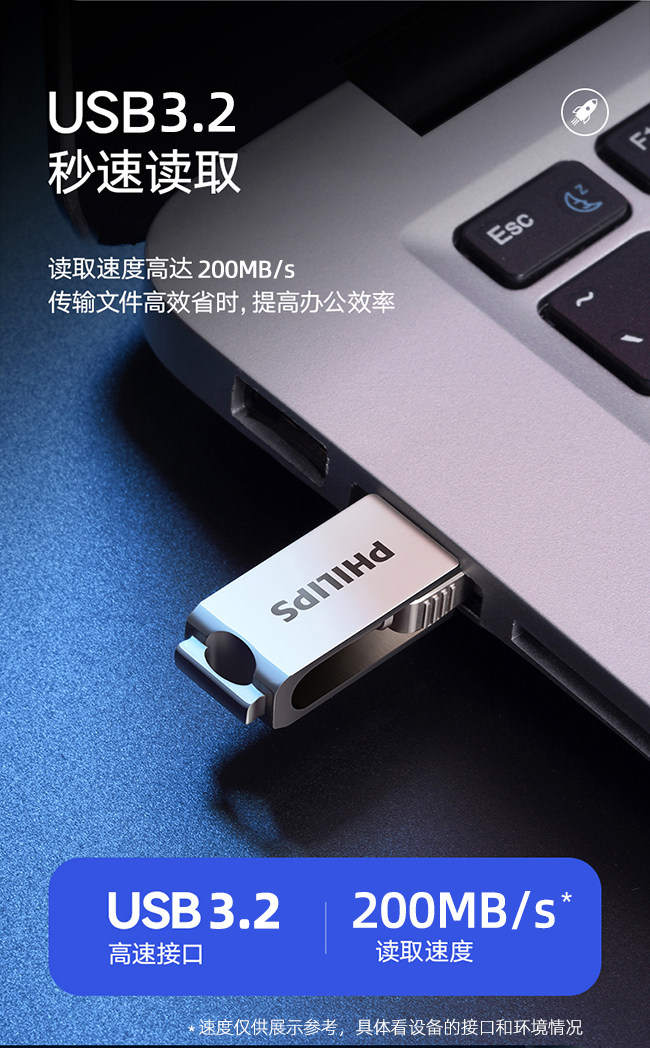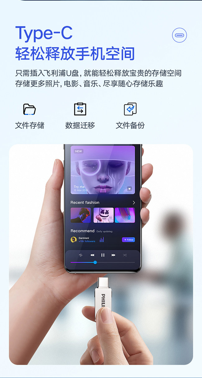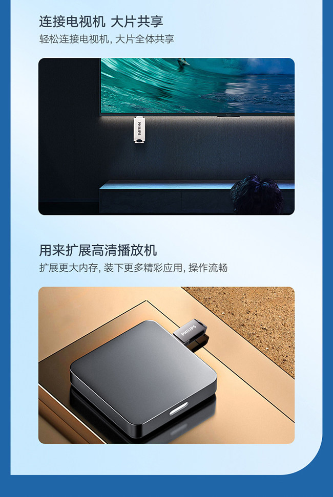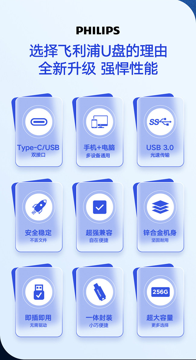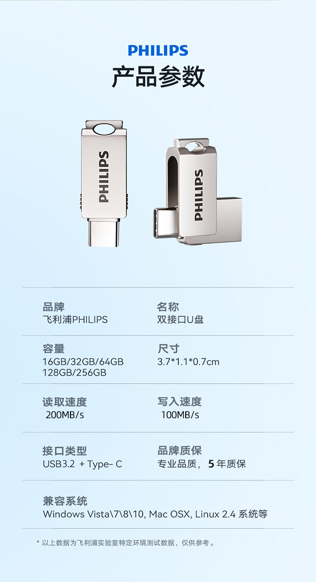 Philips USB Flash Drive Official Genuine Product 128g Large Capacity Typec Dual Interface Dual-Use Mini USB Flash Drive for Mobile Phones and Computers