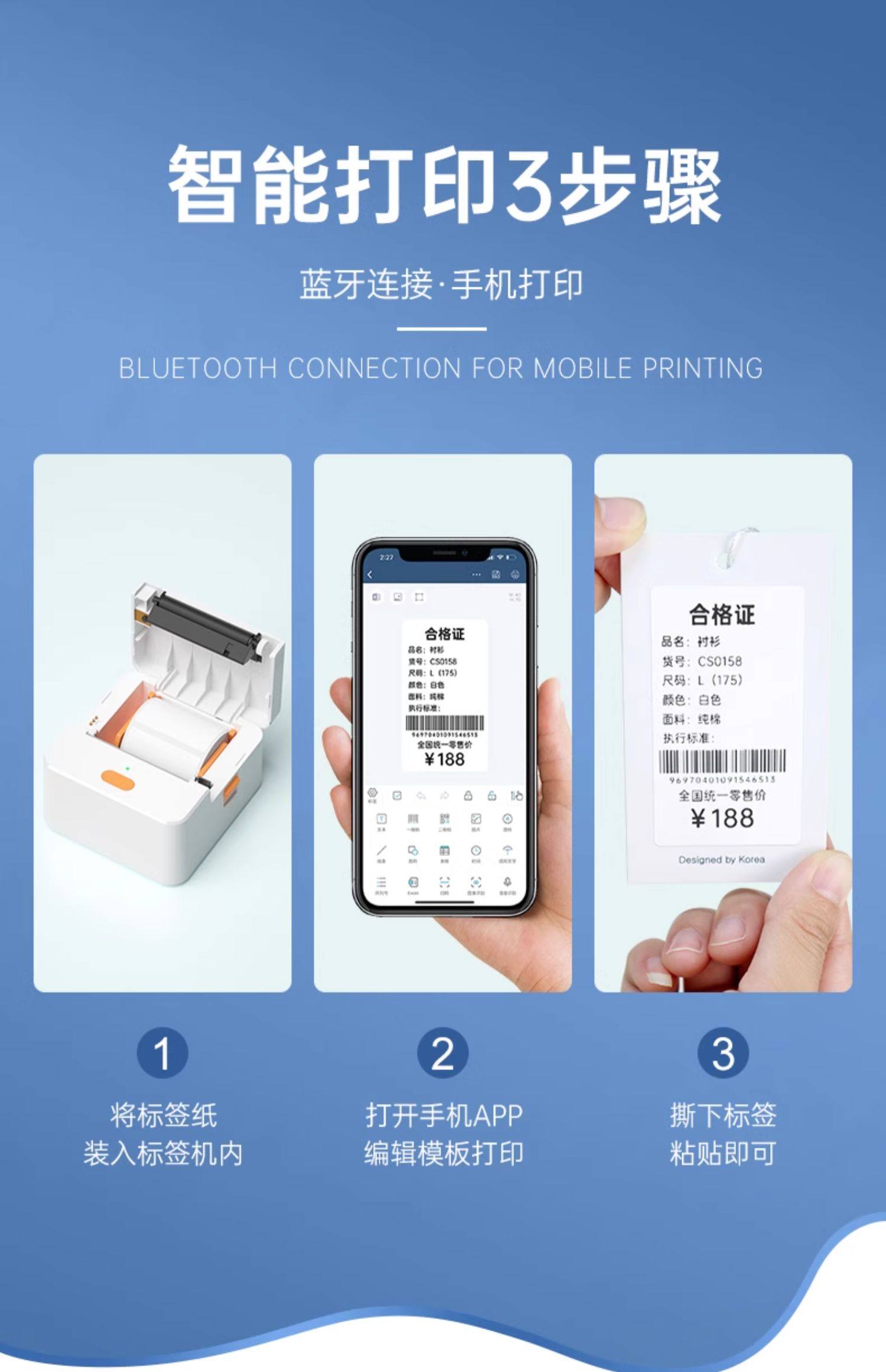 [High Definition 300Dpi] Detong P1P Label Printer Clothing Handheld Small Bluetooth Thermal Adhesive Sticker Qr Code Barcode Food Production Date Price Tag Household Label Maker