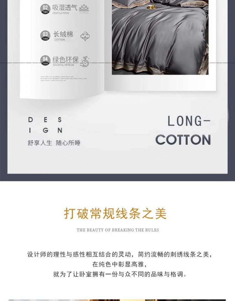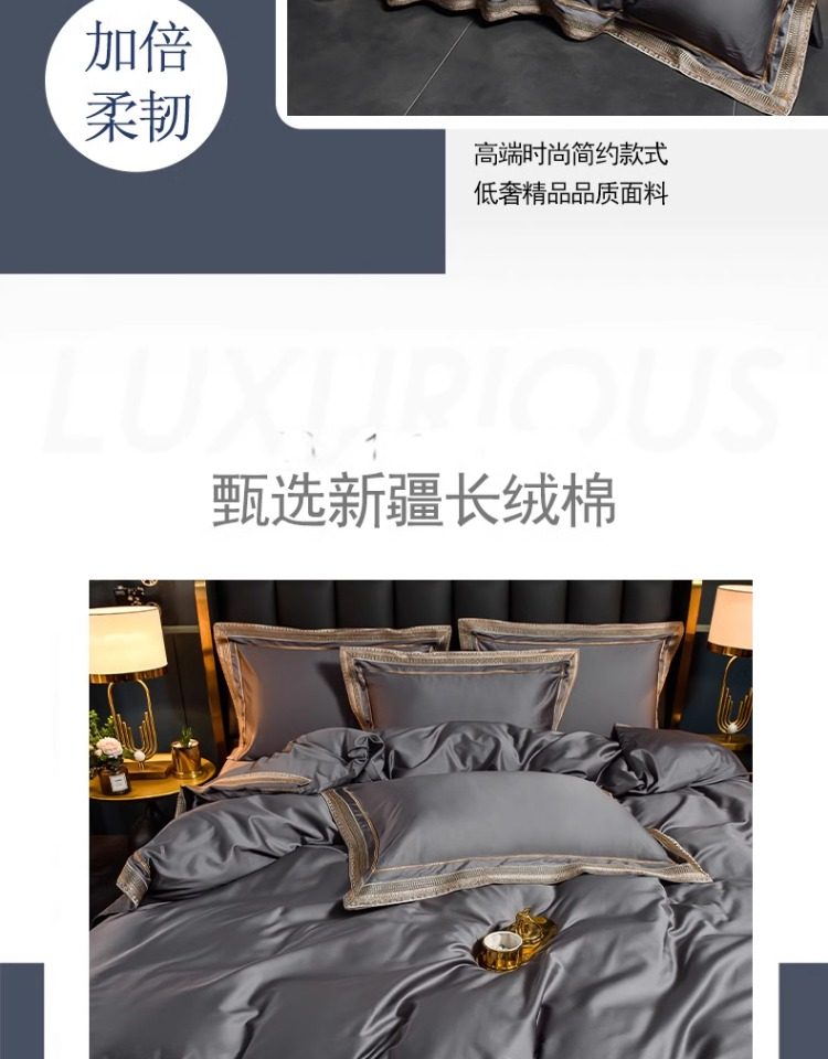 Muji Light Luxury High-End 100S Long-Staple Cotton Four-Piece Set Pure Cotton Bed Sheet Duvet Cover All-Cotton Bedding