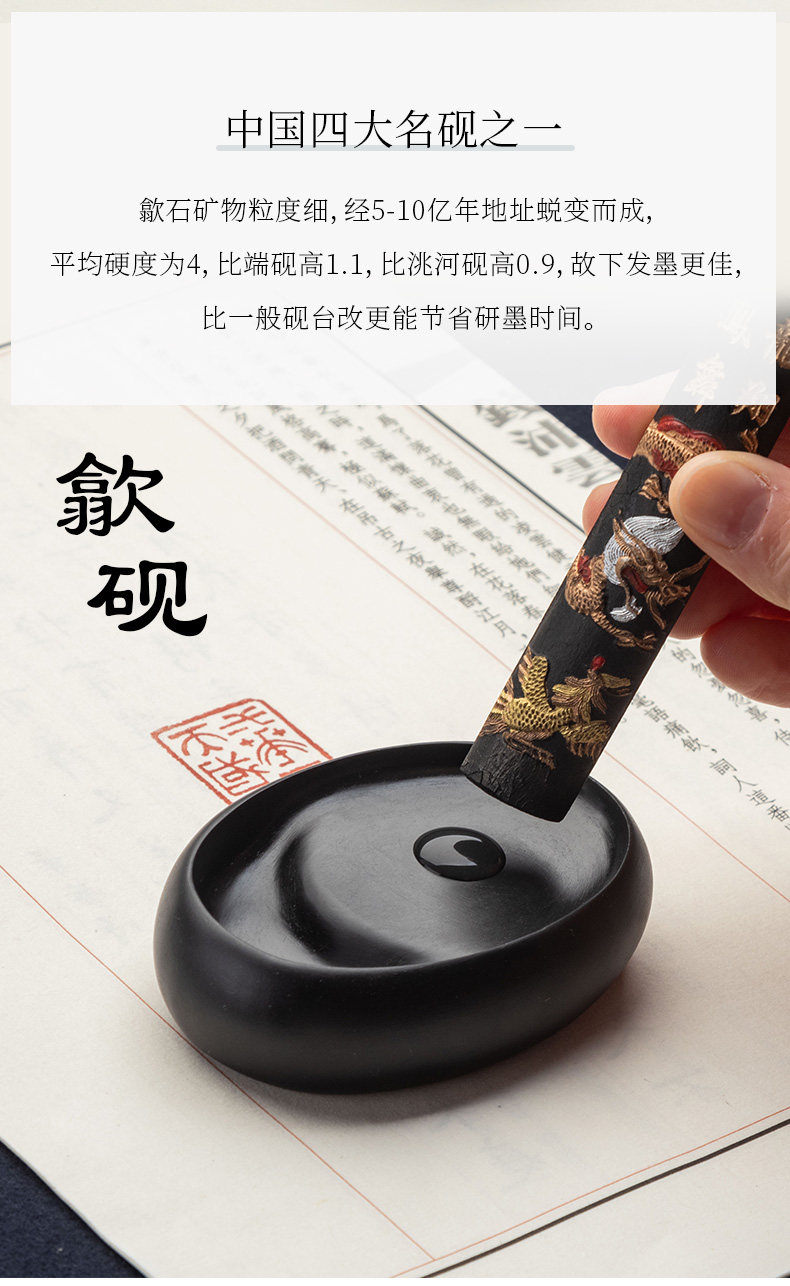 | Color Classification | Dragon Pattern Inkstone,Black Dragon Tail Inkstone,White Inkstone,Purple Inkstone,Taohe Green Inkstone,Yellow Caviar Inkstone,Dragon Pattern Inkstone + Camphor Wood Cover,Black Dragon Tail Inkstone + Camphor Wood Cover,White Inkstone + Camphor Wood Cover,Purple Inkstone + Camphor Wood Cover,Taohe Green Inkstone + Camphor Wood Cover,Yellow Caviar Inkstone + Camphor Wood Cover,Pocket-Sized Small Regular Script Inkstone |