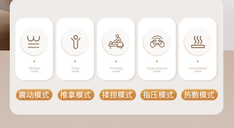| Massage Techniques | Vibration,Beat,Finger Pressure,Knock,Knead,Massage,Slap |