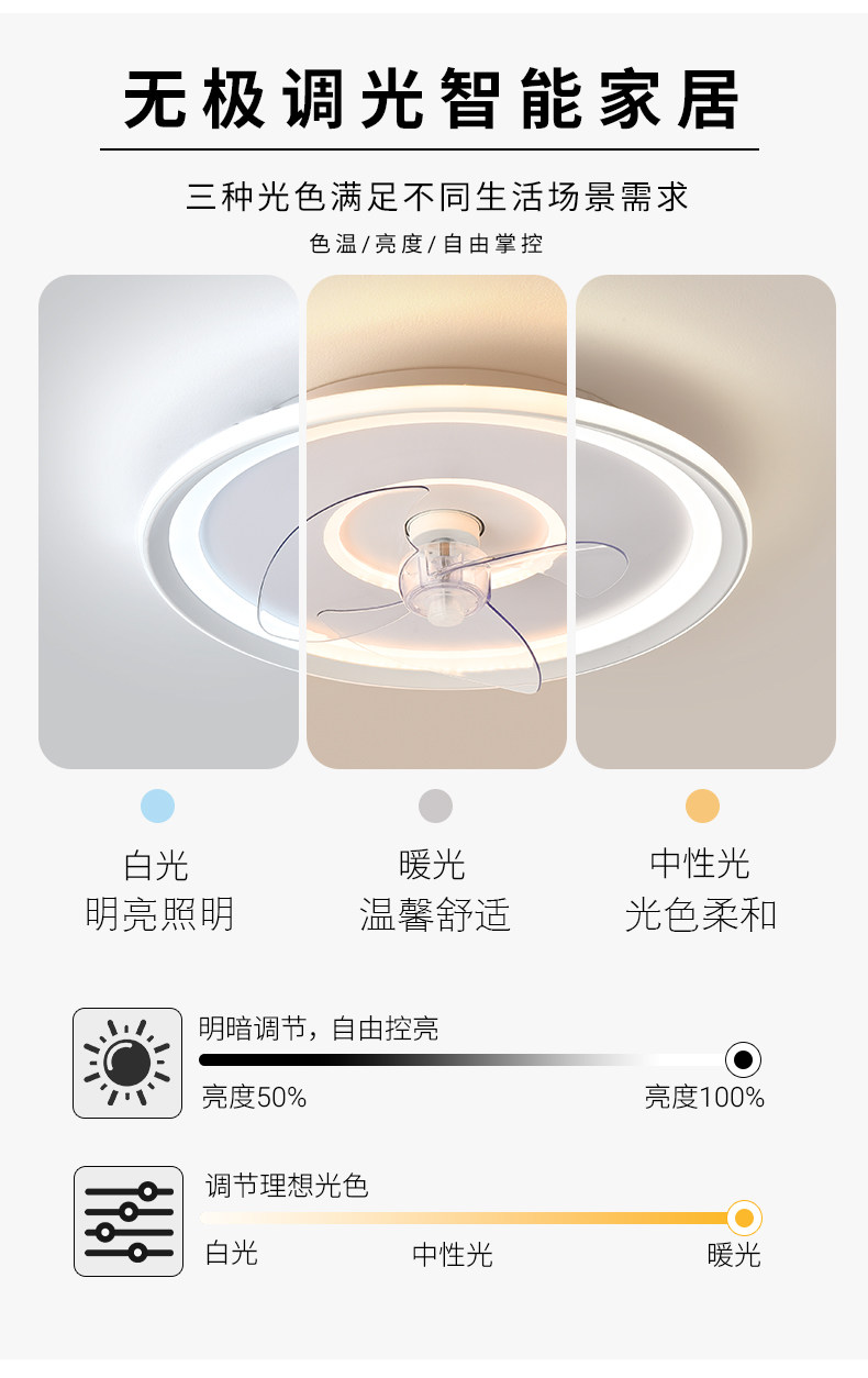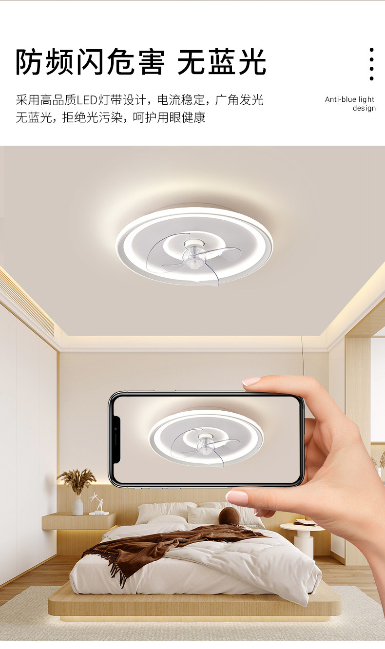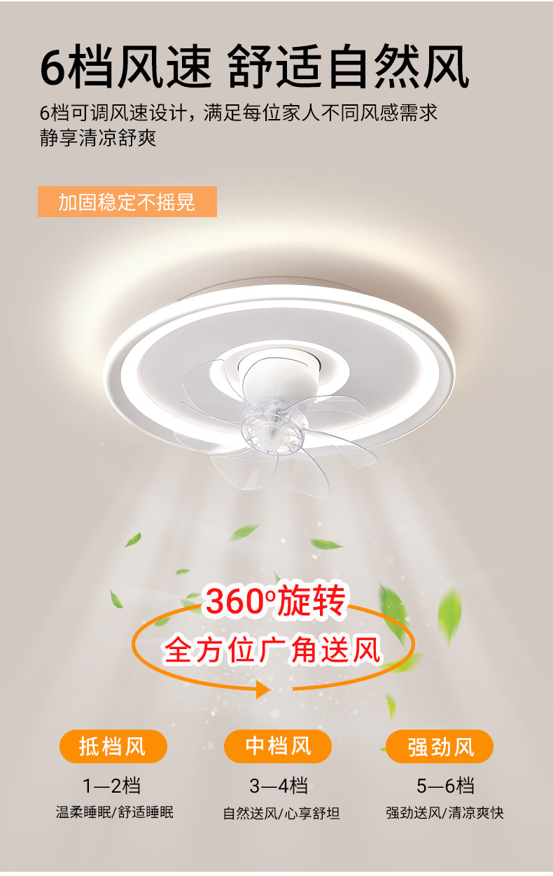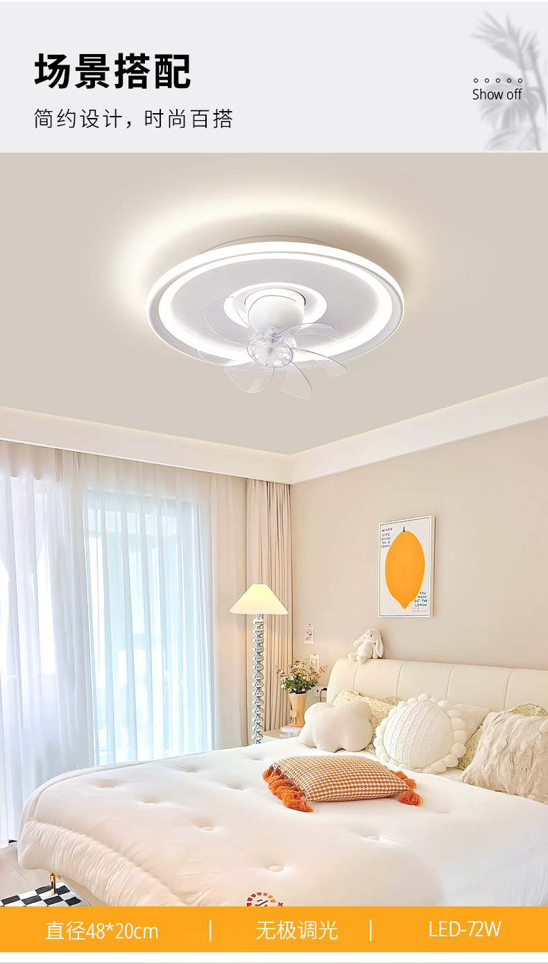 Chigo Full Spectrum Eye Protection Bedroom Ceiling Fan Light Ultra-Thin All-In-One Invisible Ceiling Fan Light with Electric Fan Chandelier