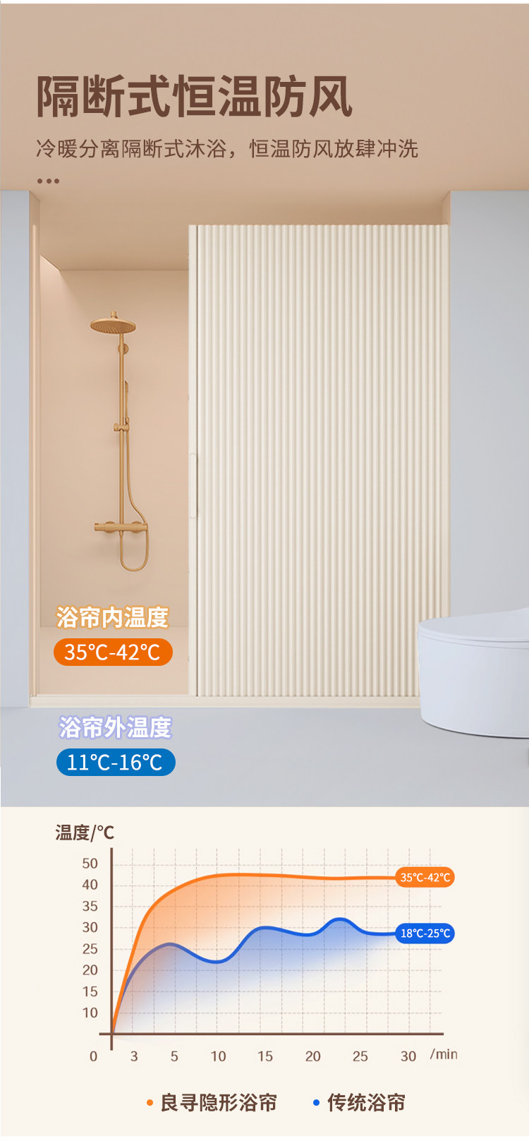 Invisible Shower Curtain Partition Curtain Waterproof High-End Shower Curtain Set No-Drill Folding Hanging Curtain Bathroom Dry and Wet Separation