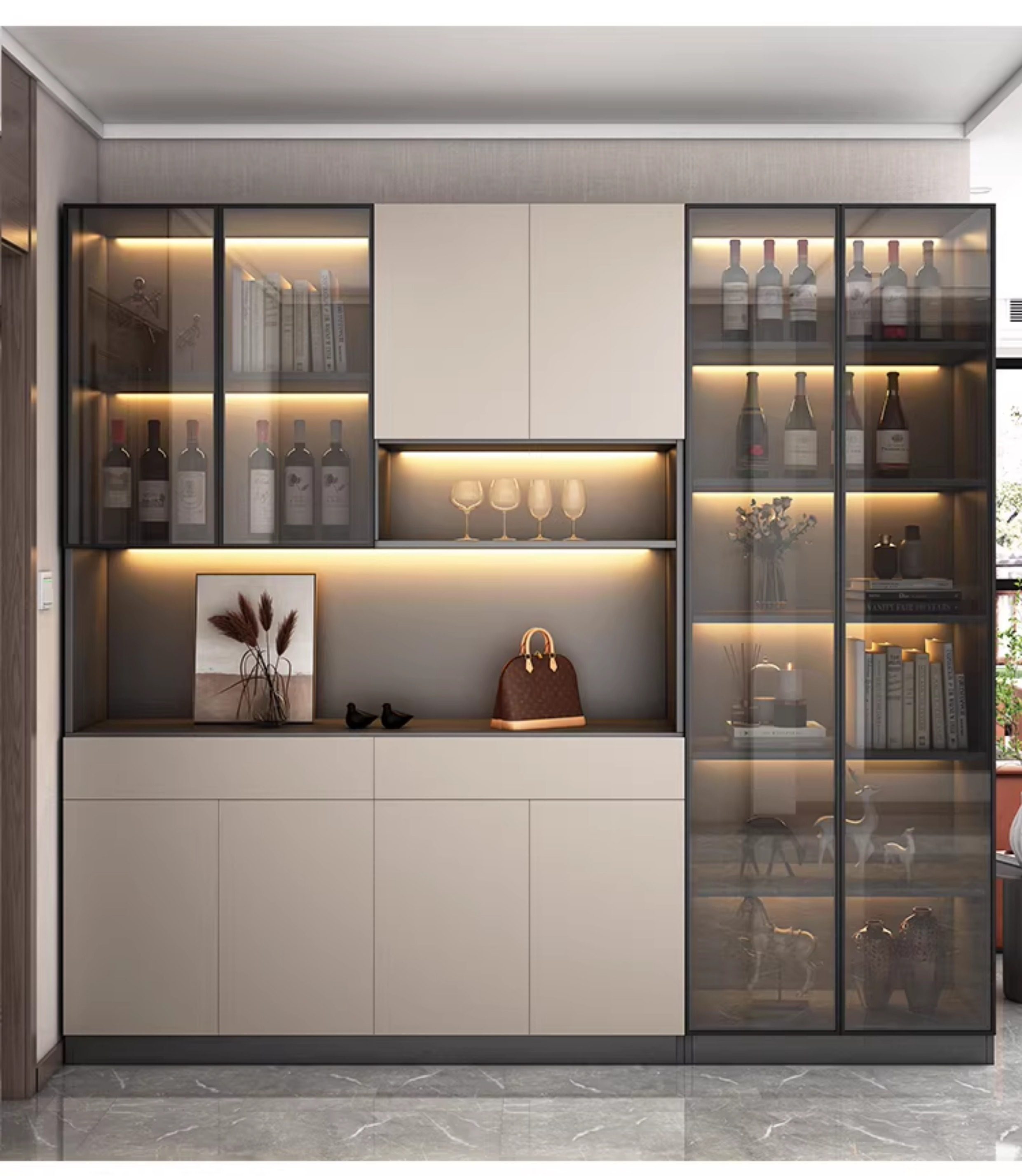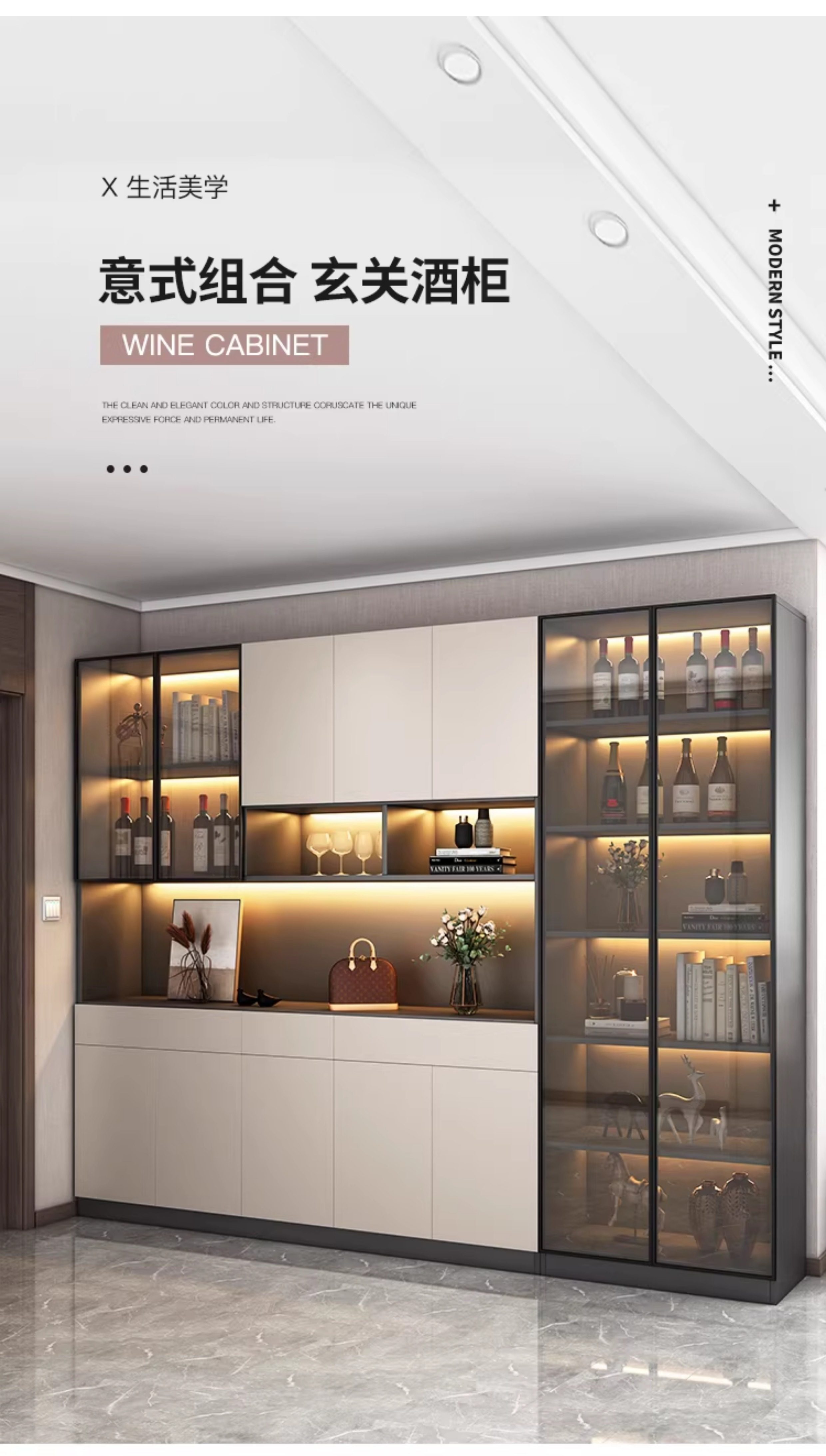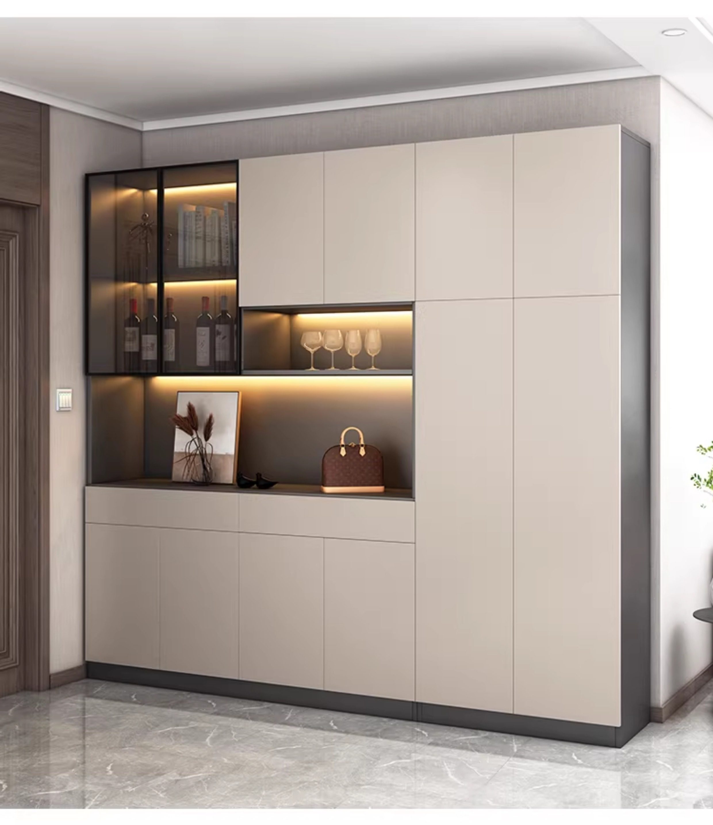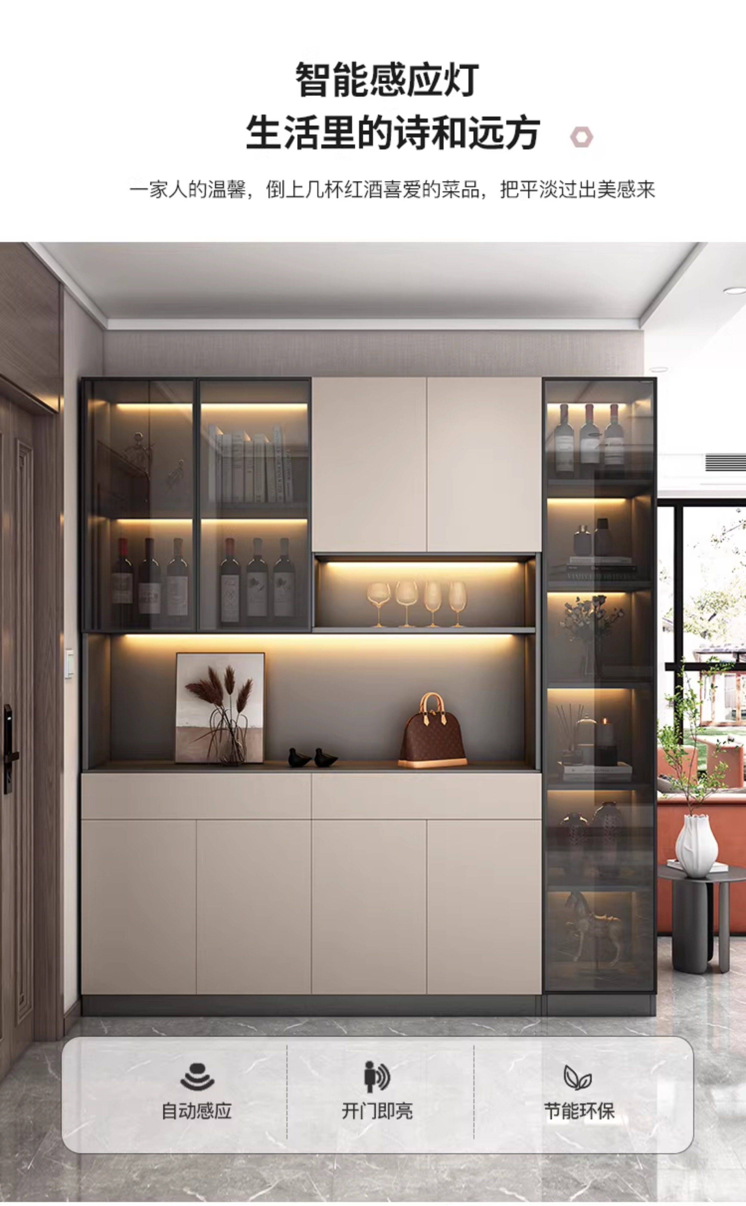 Solid Wood Entrance Cabinet, Wine Cabinet, Integrated Home Door Shoe Cabinet, Wall-Mounted High Cabinet, Modern Simple Partition, Entrance Hall Cabinet