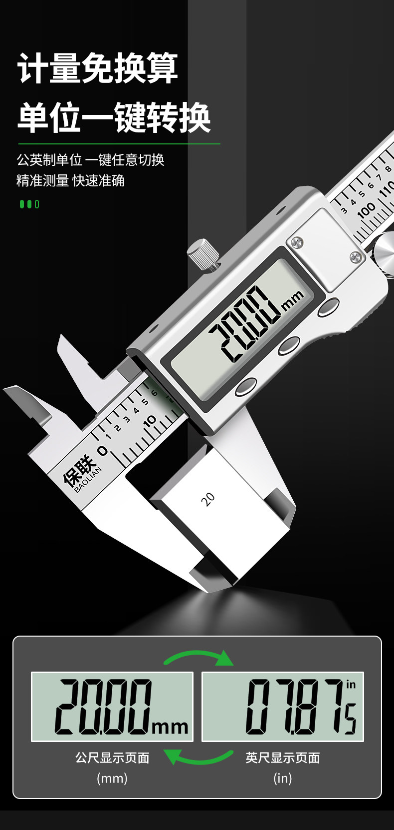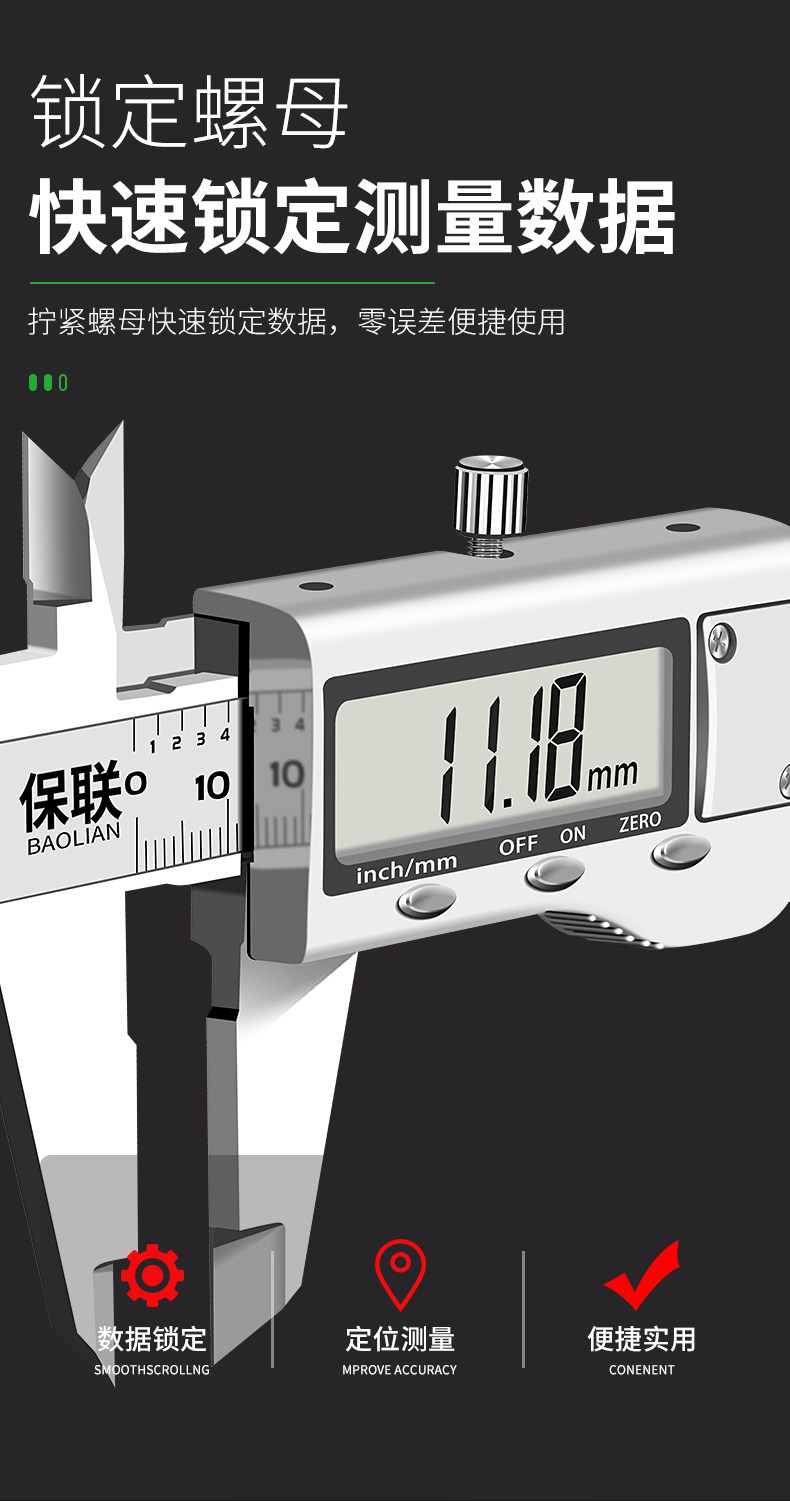 Baolian Digital Caliper, Stainless Steel, Industrial-Grade Electronic Caliper, Small Household Caliper for Crafts, Jewelry, Depth Measurement