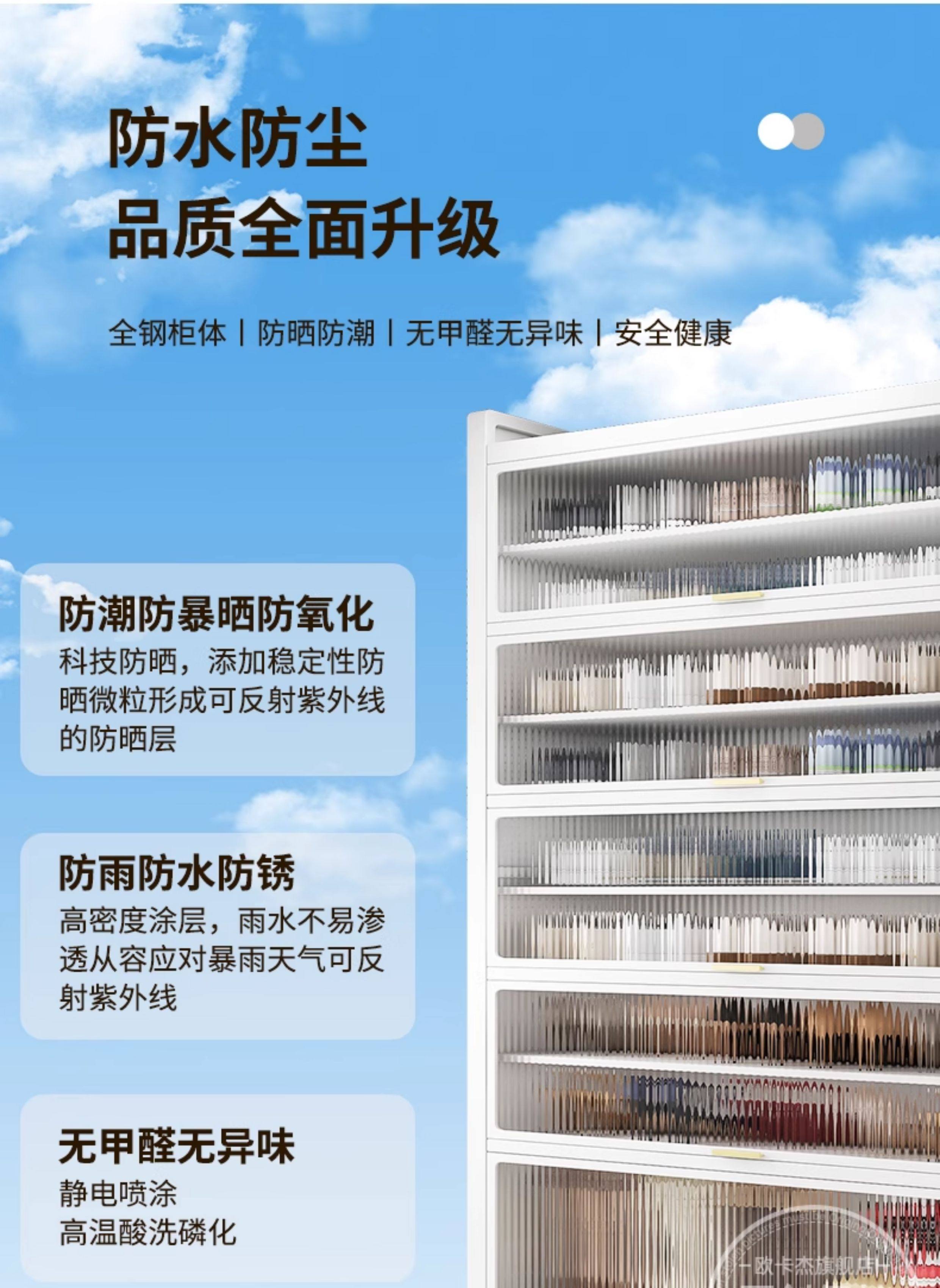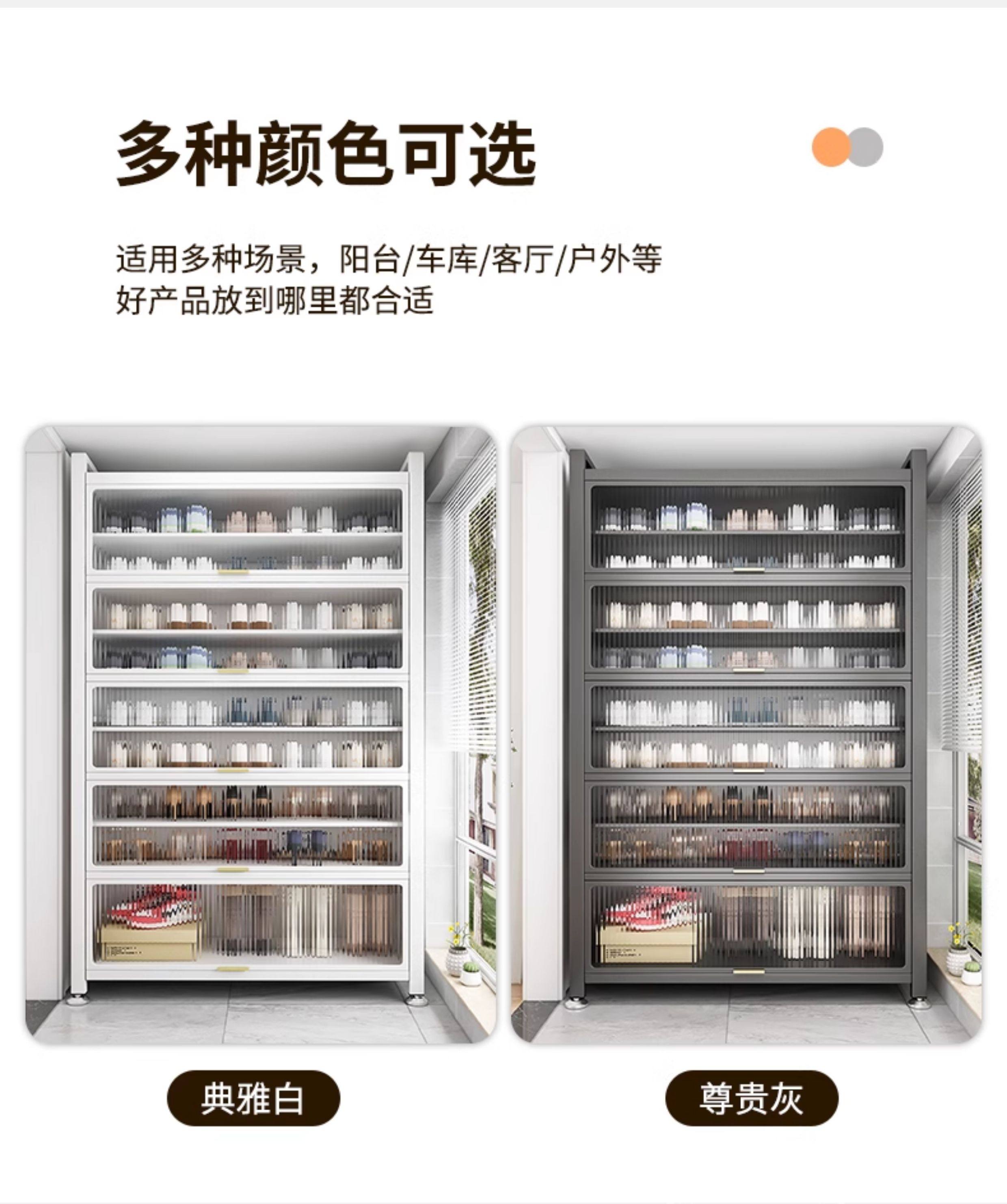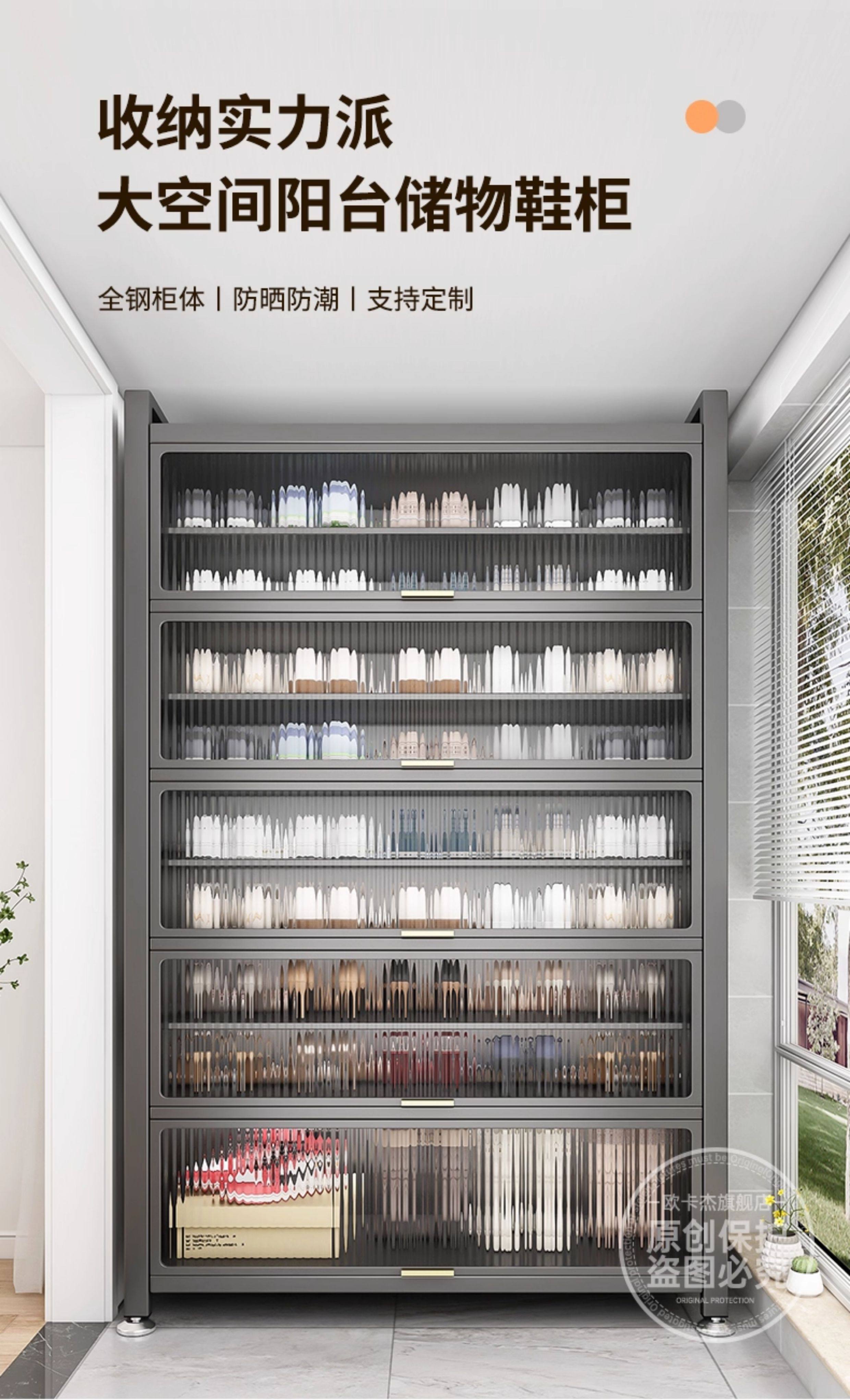 Large-Capacity Balcony Shoe Cabinet and Storage Cabinet Integrated Against the Wall with Doors, Sun-Proof and Waterproof Steel Shelves, New 2024 Hot Model