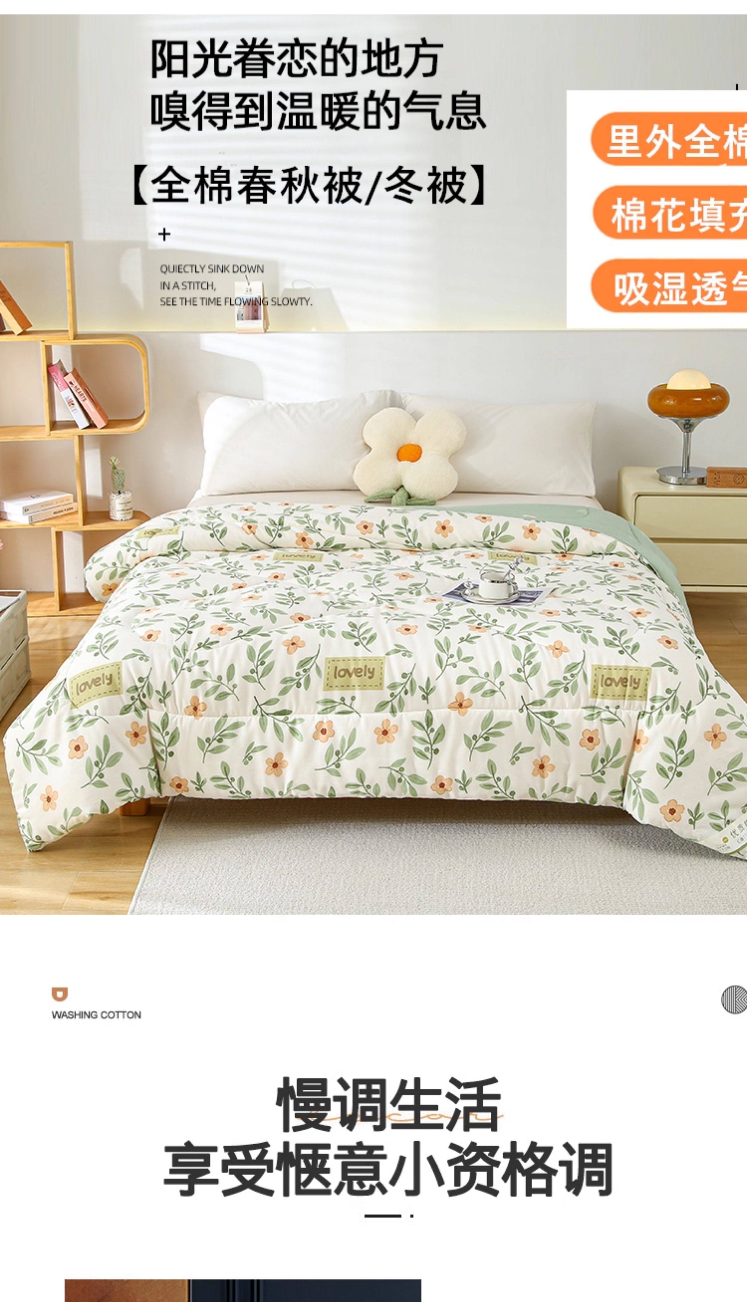 Xinjiang Cotton Quilt, Pure Cotton Spring and Autumn Quilt, Thickened Warm Winter Quilt, All-Cotton Cotton Filling, Bedding Quilt, Suitable for All Seasons