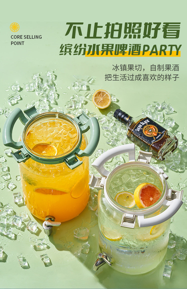 Coke Bucket Heat-Resistant Glass Wine Bottle Cocktail Bucket Beverage Bucket with Faucet Fruit Tea Bucket Container Cold Water Pitcher