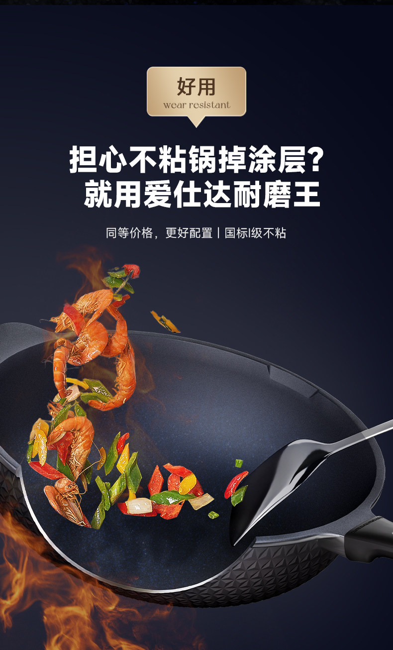 Aistar Wear-Resistant King of Non-Stick Cookware, Flat-Bottomed Frying Pan for Home Use, Suitable for Induction Cookers and Gas Stoves