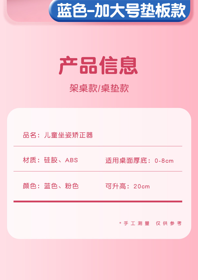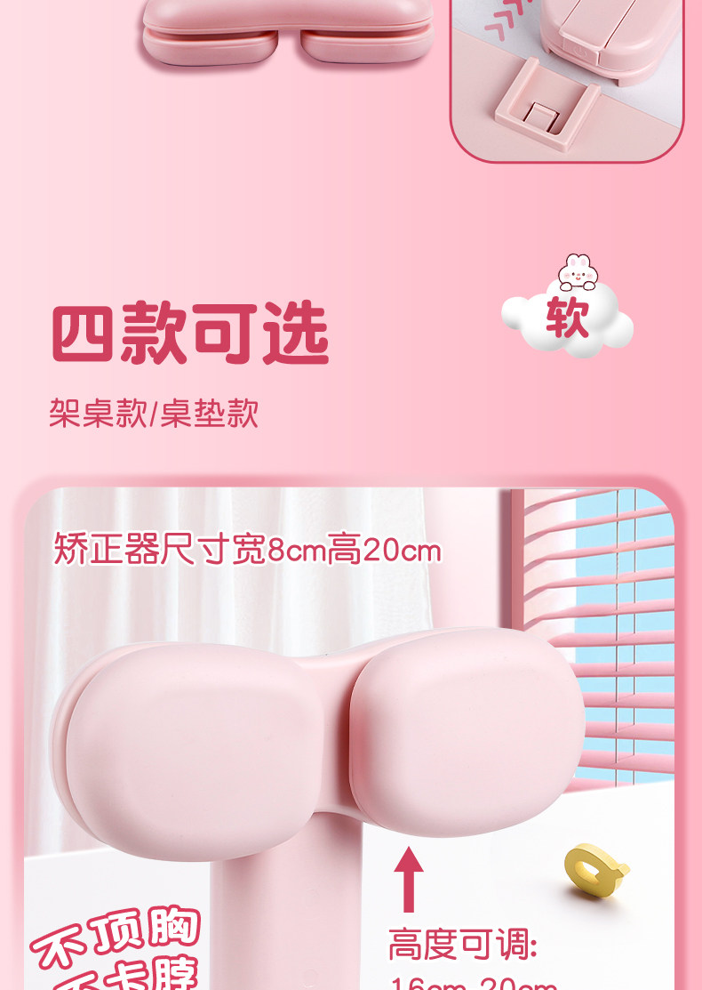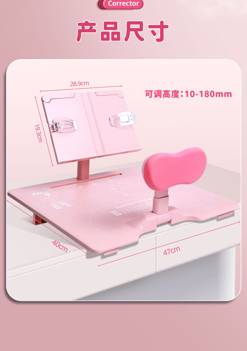 | Color Classification | [Powder]Clip-On Desk Mount - Posture Corrector,[Blue]Clip-On Desk Mount - Posture Corrector,[Powder]Extra Large Writing Board - Sitting Posture Correction Tool,[Blue]Extra Large Writing Board - Sitting Posture Correction Tool,[Powder]Adjustable Reading Stand - a Magical Tool for Vision Protection,[Blue]Adjustable Reading Stand - a Magical Tool for Vision Protection,[Powder]Reading Stand - a Magical Tool for Vision Protection,[Blue]Reading Stand - a Magical Tool for Vision Protection,Blue - Clip-On Desk Mount[Corrector],Pink - Clip-On Desk Style[Corrector],Blue - Clip-On Desk Mount[180°Corrector],Pink - Clip-On Desk Style[180°Corrector],Blue-Table Mat[180°Corrector + Pad],Pink-Table Mat[180°Corrector + Pad],Blue - Pad Style[180°Corrector +12°Backing Plate],Pink - Pad Style[180°Corrector +12°Backing Plate],Blue - Pad Style[180°Corrector +12°Pad + Reading Stand],Pink - Pad Style[180°Corrector +12°Pad + Reading Stand],Pink Upgraded Version[Reading Stand],Blue Upgraded Model[Reading Stand],White Upgraded Model[Reading Stand],Green Upgraded Model[Reading Stand],[Powder]With Writing Board - Sitting Posture Correction Tool,[Blue]With Writing Board - Sitting Posture Correction Tool |