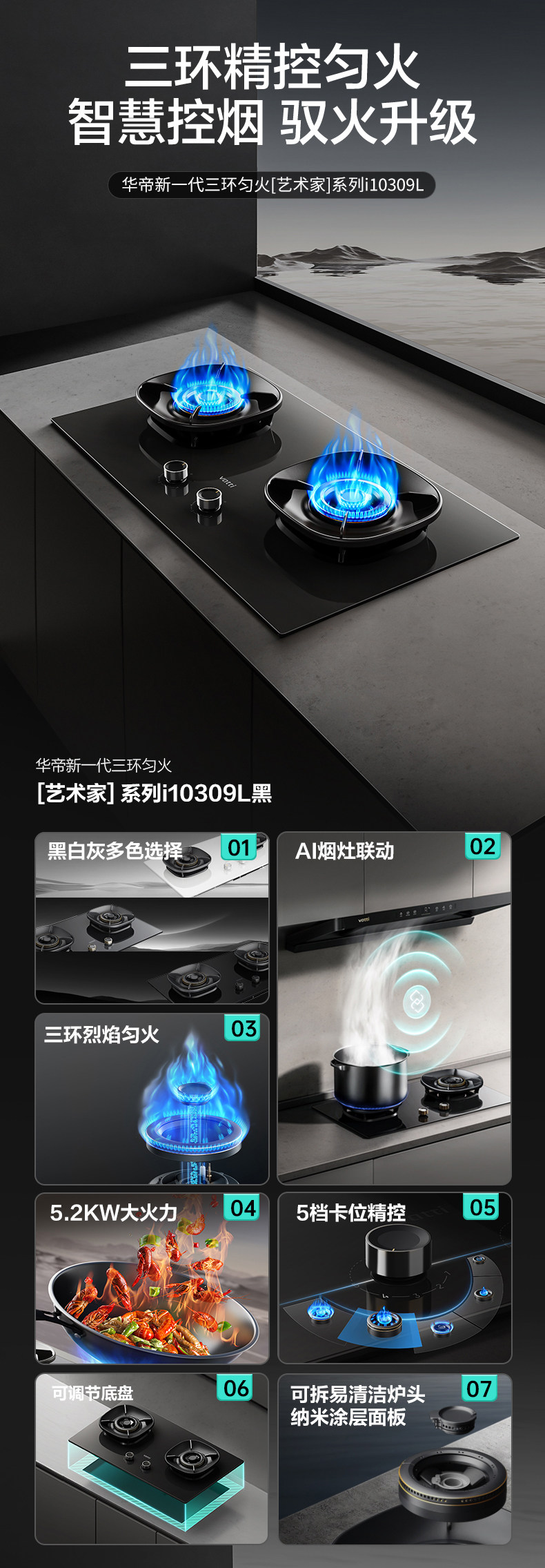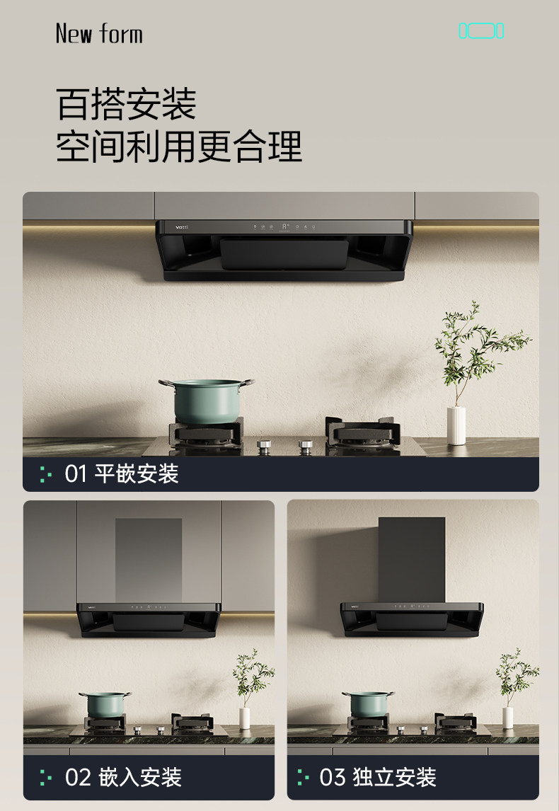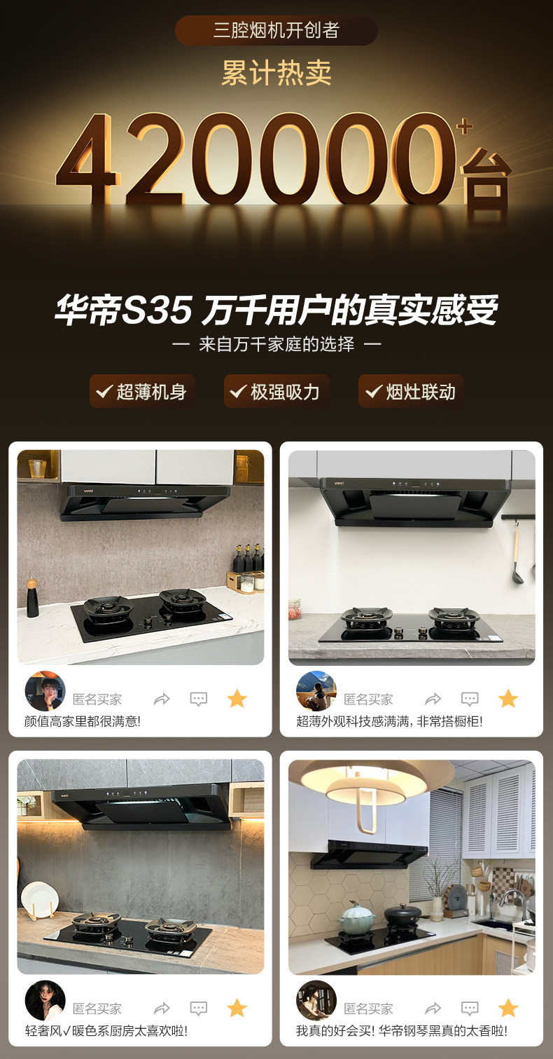 Vatti Smoke and Stove Linkage Set S35/S35P Home Kitchen Range Hood and Gas Stove Package Official official store