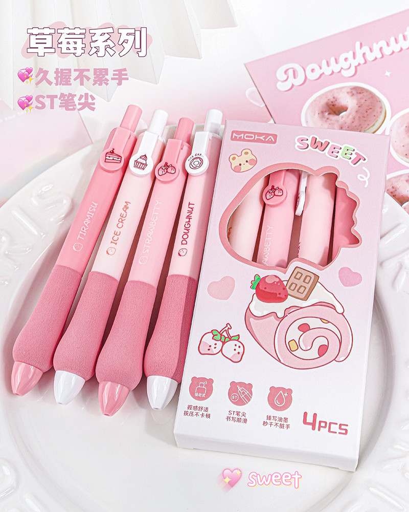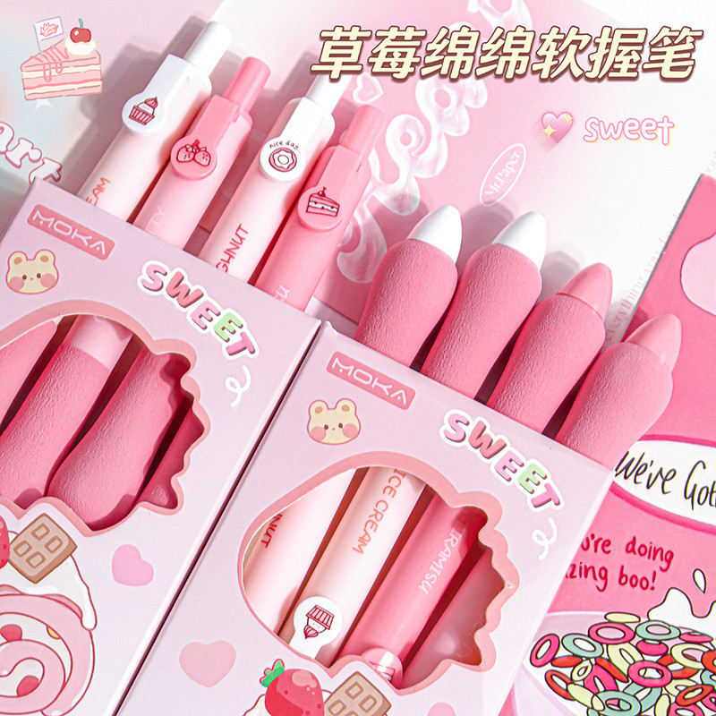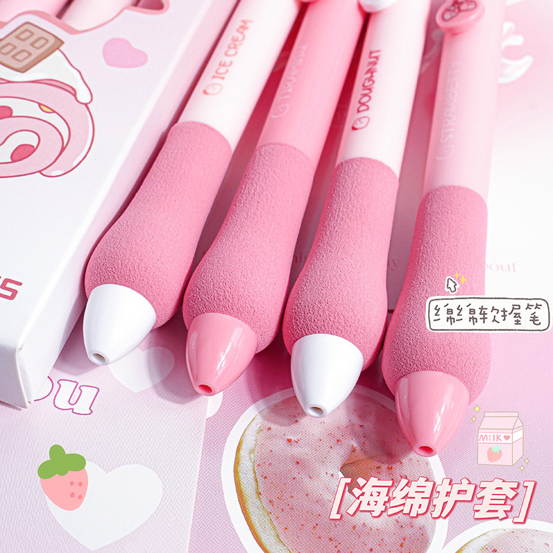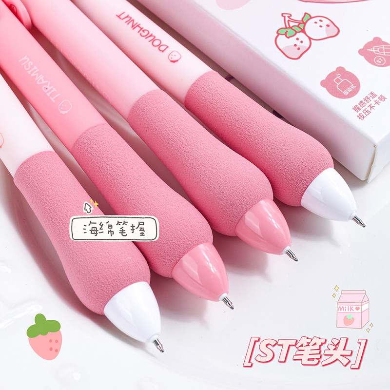 Magic Card's New Strawberry Season Sponge Soft-Grip European-Style Pen, High-Value Retractable Gel Pen, Student Exam Special Quick-Drying Smooth 0.5mm Easy-To-Write St Tip Pen, Black Pen, Water-Based Pen, Signature Pen