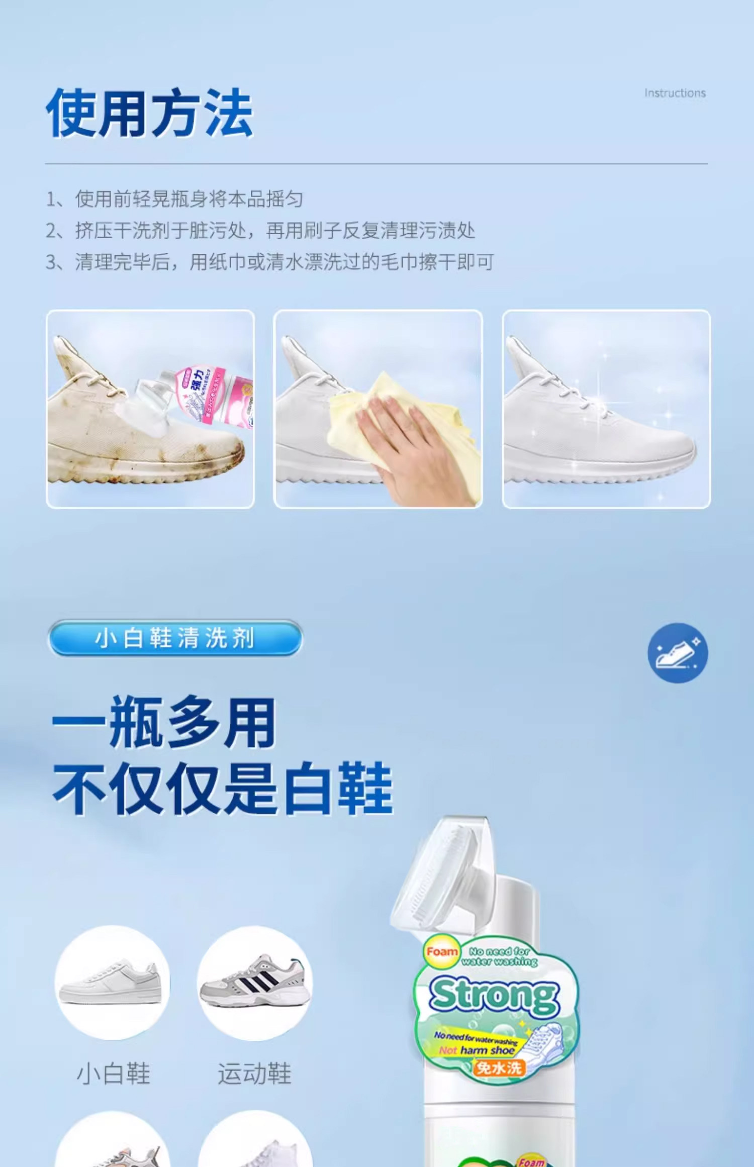 | Color Classification | 1 Bottle☆No Water Required, Comes with Brush Head☆[If It's Not Working, Return It Directly],2 Bottles ☆ No Water Required, Comes with Brush Head ☆[If It's Not Working, Return It Directly],3 Bottles☆No Water Required, Comes with Brush Head☆[If It's Not Working, Return It Directly],5 Bottles☆No Water Required, Comes with Brush Head☆[If It's Not Working, Return It Directly],White Shoe Cleaner X Trial Size X Not Recommended X |