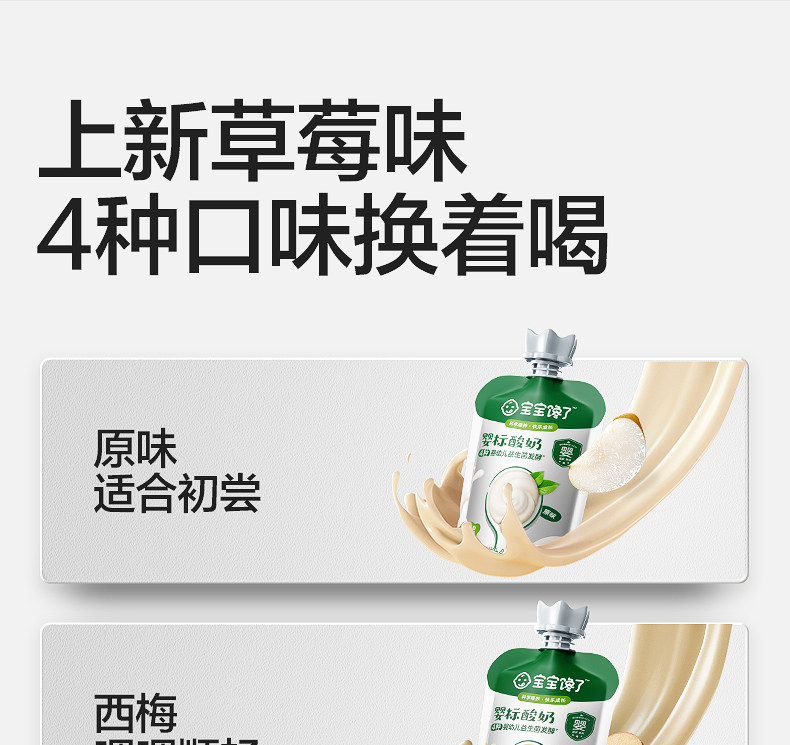 | Taste | [30 Bags of 3 Flavors] Original Flavor*10 Bags + Yellow Peach Flavor*10 Bags + Prune Flavor*10 Bags,[30 Bags, 2 Flavors] Original Flavor*15 Bags + Prune Flavor*15 Bags,[30 Bags of Original Flavor] Original Yogurt 85g*30 Bags,[30 Bags, 2 Flavors] Original Flavor*15 Bags + Yellow Peach Flavor*15 Bags,[20 Bags of 3 Flavors] Original Flavor*8 Bags+Prune Flavor*6 Bags+Yellow Peach Flavor*6,[20 Bags of Original Flavor] Original Flavor 85g*20 Bags,[20 Bags, 2 Flavors] Original Flavor*10 Bags + Yellow Peach Flavor*10 Bags,[20 Bags, 2 Flavors] Original Flavor*10 Bags + Prune Flavor*10 Bags,【30 Original Flavor I Nutritional Upgrade I Organic A2 Yogurt】Original Flavor * 30 Sachets,[30 Bags of 2 Flavors I Advanced Nutrition I Organic A2 Yogurt] Original Flavor*15 Bags + Prune Flavor*15 Bags |