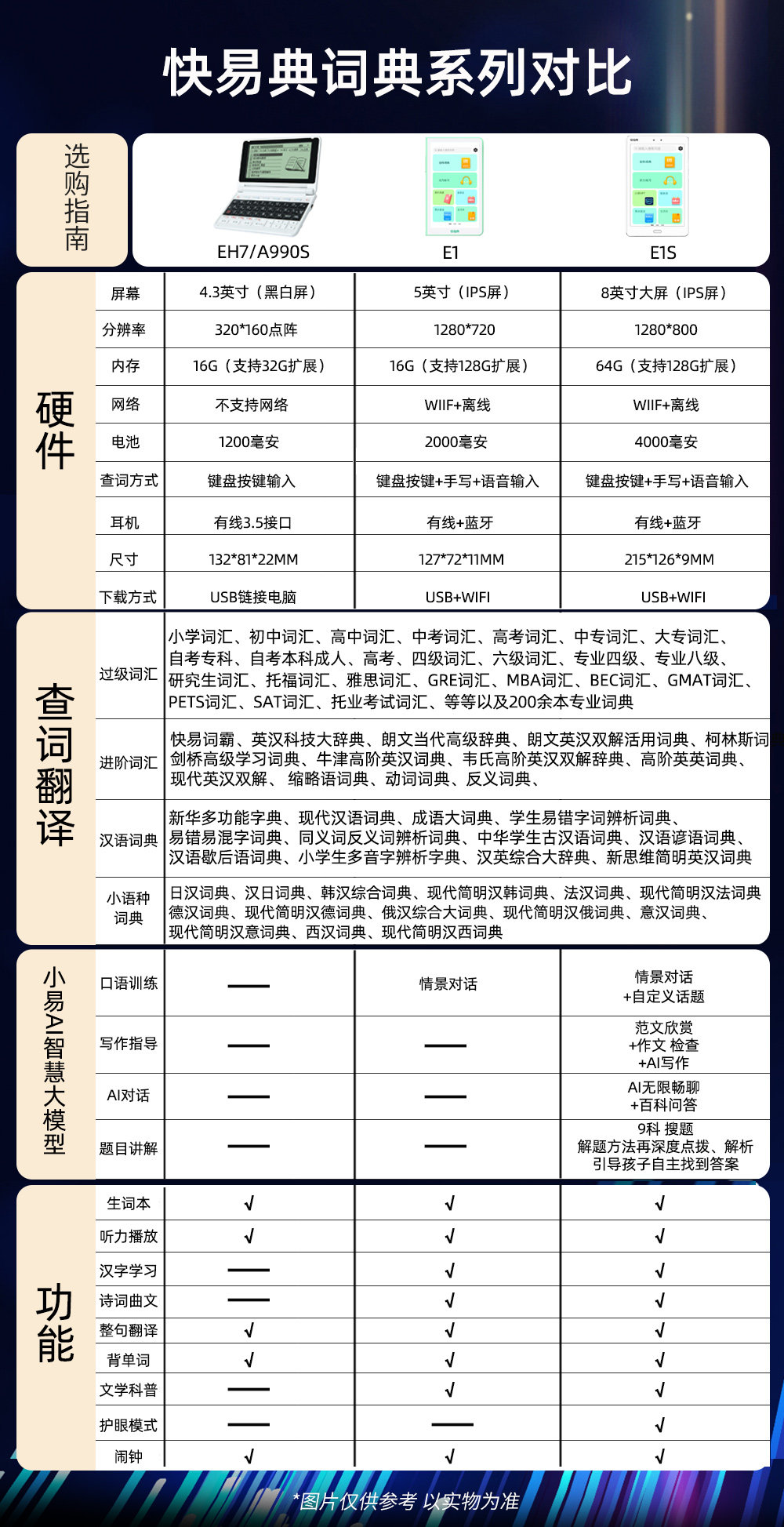 | Color Classification | E1Pro【 5.5inch Screen】Comes with 64g Data Card,E1Pro【 5.5inch Screen】Comes with 128g Data Card,E1S [8inch Screen] Comes with 64g Data Card + Dictionary Pen,E1S [8inch Screen] Comes with 128g Data Card + Dictionary Pen,Test [Do Not Purchase] |