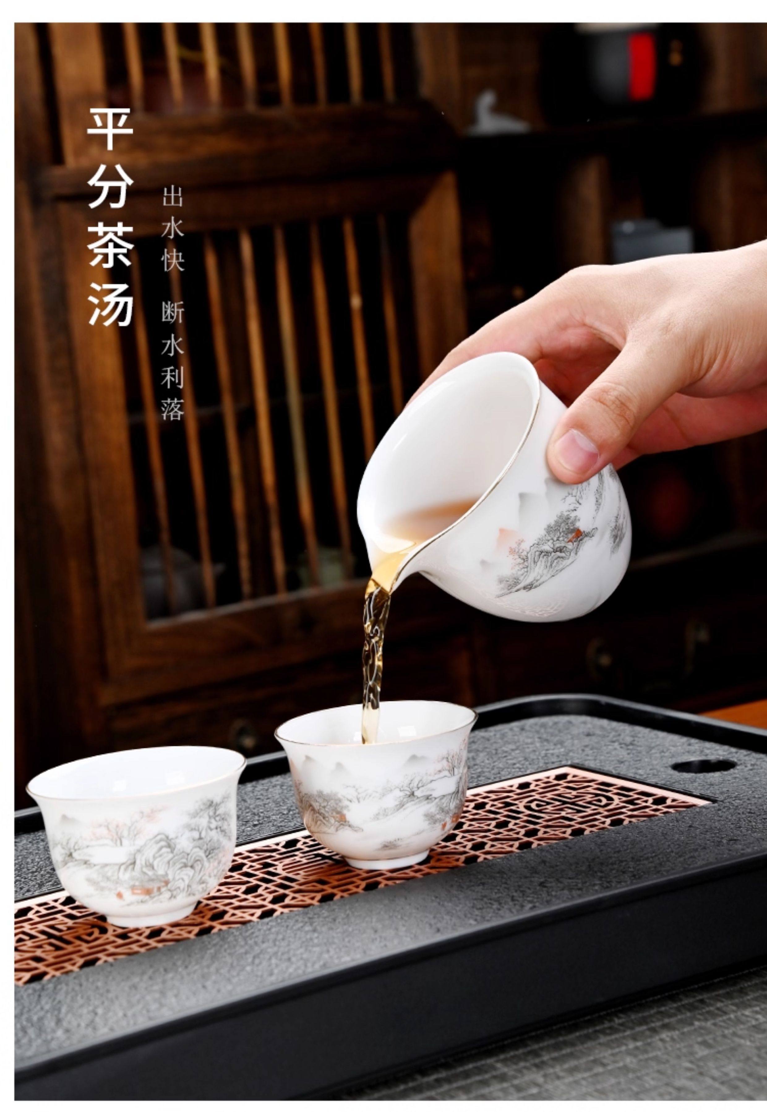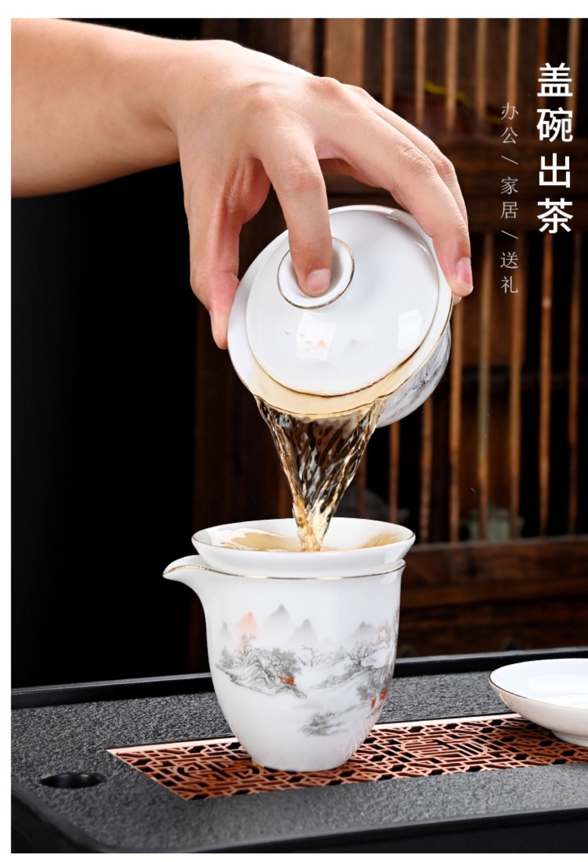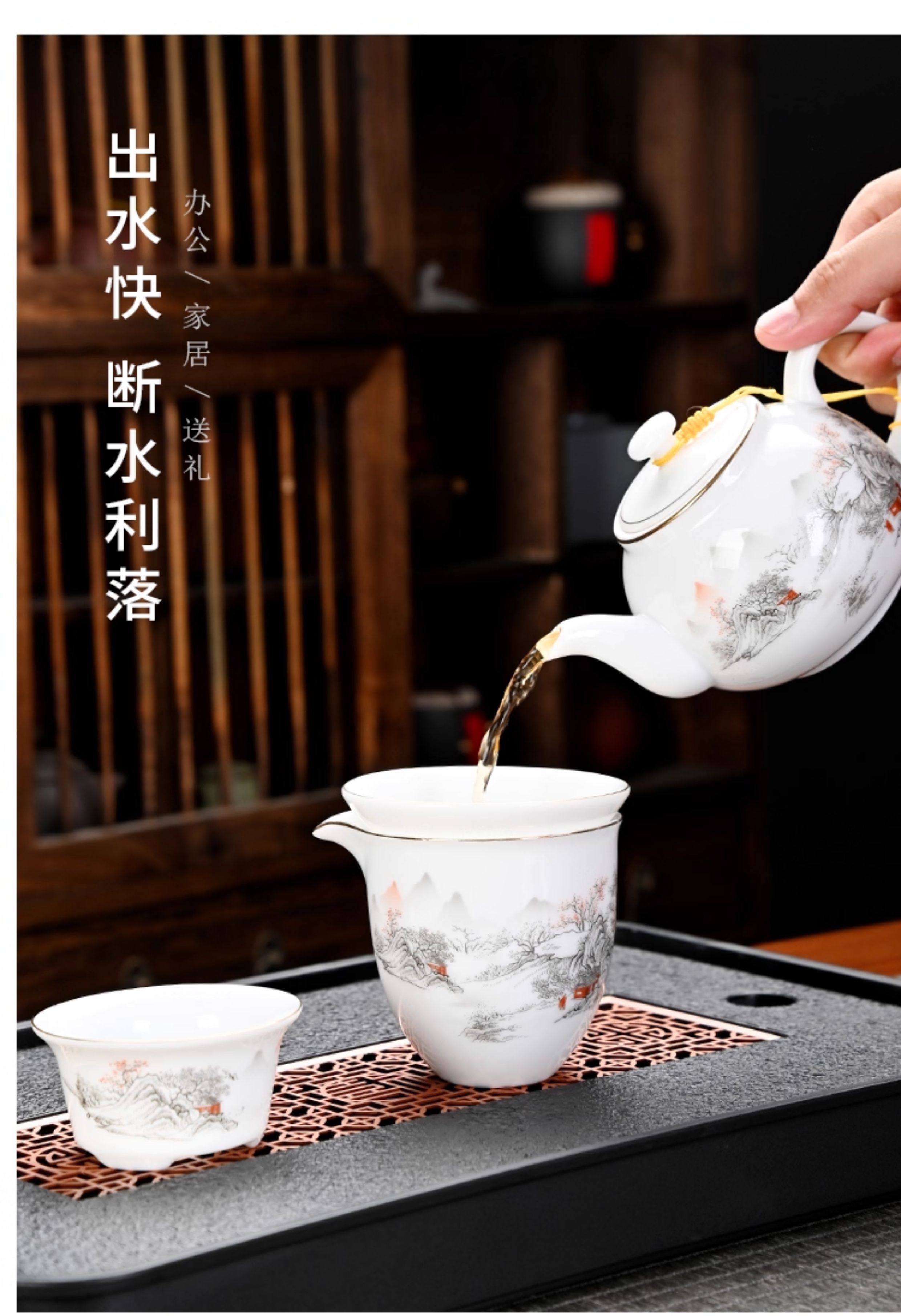 Ice Jade Porcelain White Tea Set, Complete Set for Home Use, Kung Fu Tea Cups, Ceramic High-End Teapot Set