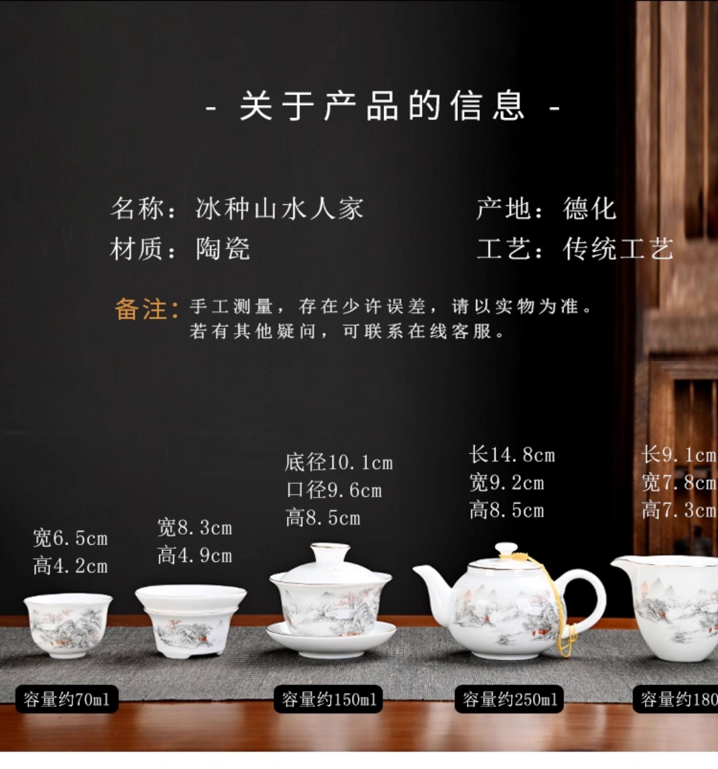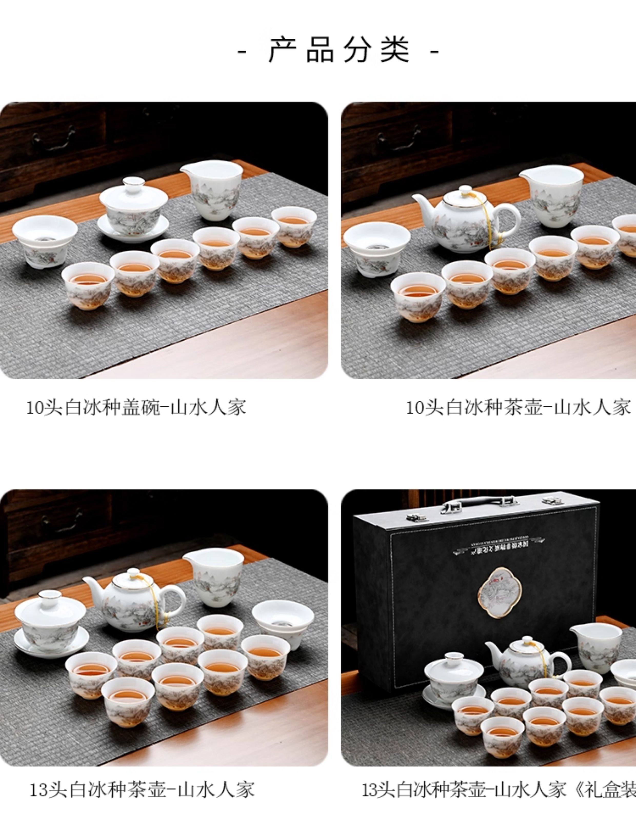 | Color Classification | 10-Head White Ice Teapot-Shanshui Renjia,10-Head White Ice Tureen-Shanshui Renjia,10-Head White Ice Teapot-Shanshui Renjia-Portable Gift Box,10-Head White Ice Tureen-Shanshui Renjia-Portable Gift Box,13-Head White Ice Teapot-Shanshui Renjia,13-Head White Ice Teapot-Shanshui Renjia-Portable Gift Box,13-Head White Ice Teapot-Landscape People + Small Chinese Window Grille Tea Rhyme Stone Plate,14 White Ice Heads - Shanshui Renjia (with He Gui Teapot + Tureen + 2 Cups + Tea Ceremony),14 White Ice Heads - Shanshui Renjia (with He Gui Teapot + Tureen + 2 Cups + Tea Wash),15 White Ice Heads - Shanshui Renjia (with He Gui Pot + Tureen + 2 Cups + Tea Ceremony + Tea Wash),10-Head White Ice Teapot + Small Tea Tray,10 White Ice Covered Bowls + Small Tea Tray,15 White Ice Heads + Medium Tea Tray,15-Head White Ice Jade - "Landscape Family" (Gift Box Set) Family Portrait |