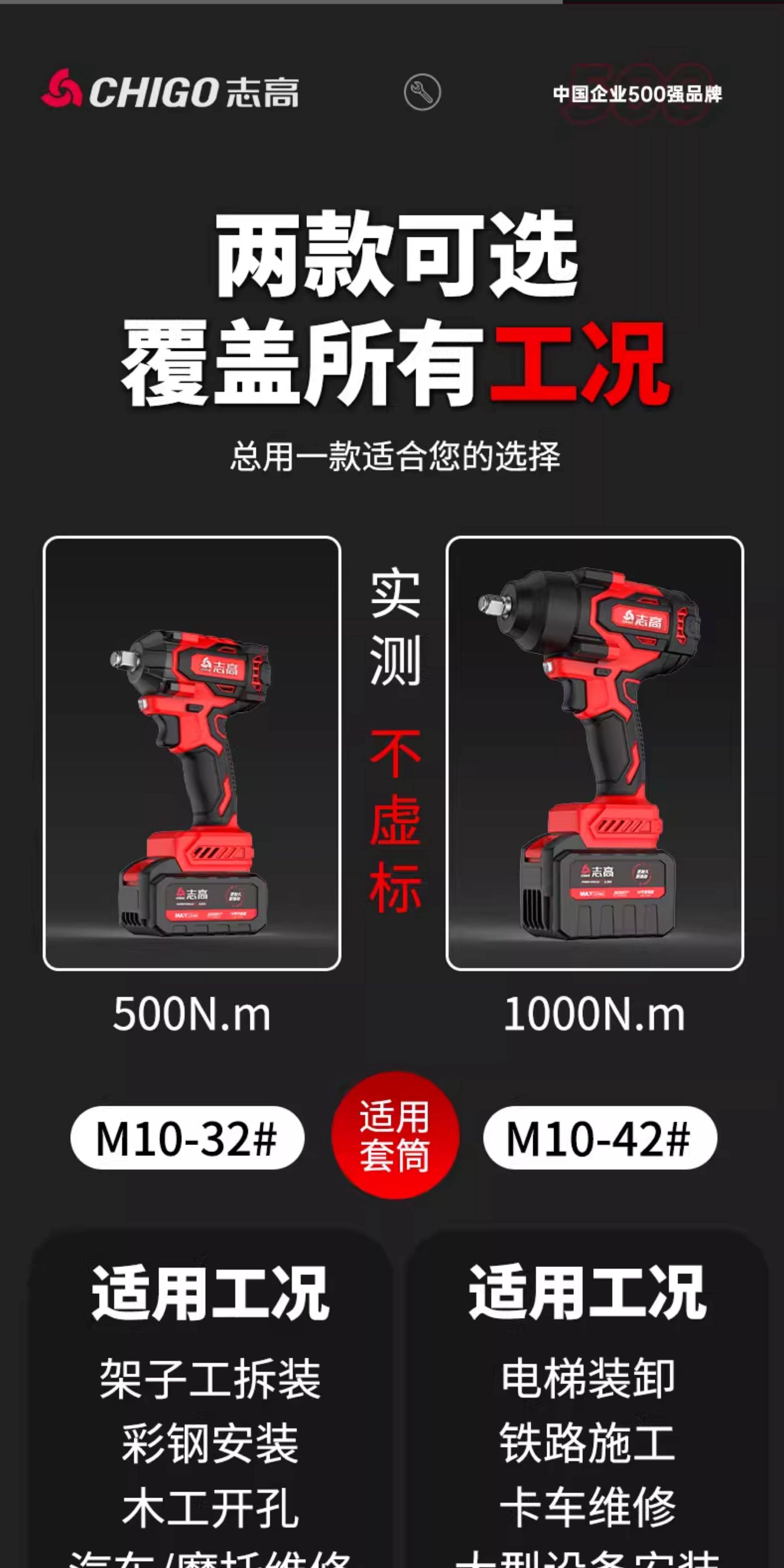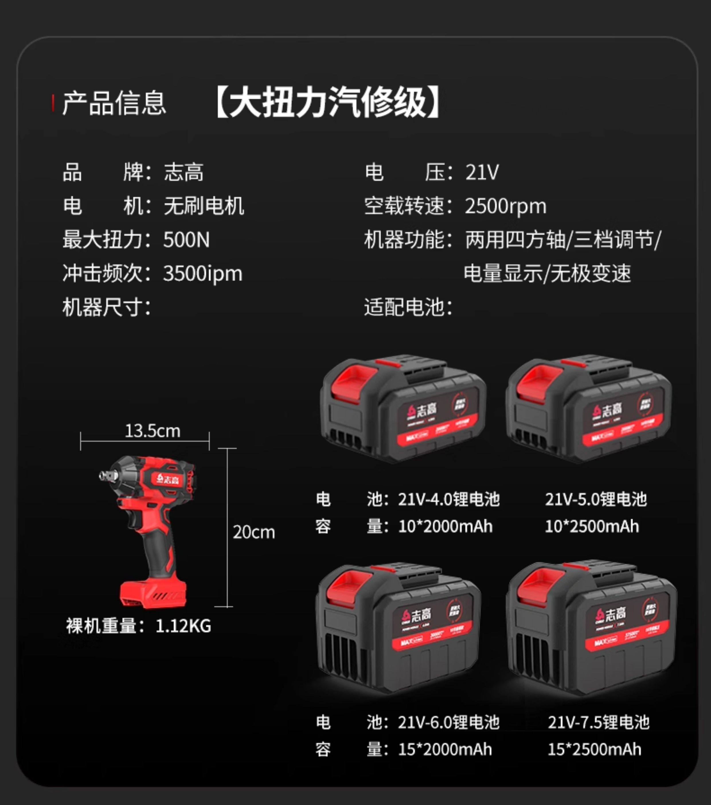 | Color Classification | ✅Buy Genuine and Good Tools, Look for Chigo Stores,✅15-Day Free Trial - Everyone Who Has Used It Says It Is Good,✅The Power of Disassembly and Assembly - Specialized in Tightening Nuts,✅High-Torque Truck Bolts Can Be Easily Removed!,Actual Measured 500N Auto Repair Grade Lightweight Type⬇️⬇️⬇️,[High Torque Automotive Grade]10 Sections 4.0Ah One Battery + Standard Configuration,[High Torque Automotive Grade]10 Sections 4.0Ah One Battery + Luxury Gift,[High Torque Automotive Grade]10 Sections 4.0Ah Two Batteries + Luxury Gift,[High Torque Automotive Grade]10 Sections 5.0Ah One Battery + Luxury Gift,[High Torque Automotive Grade]10 Sections 5.0Ah Two Batteries + Luxury Gift,[High Torque Automotive Grade]15 Sections 6.0Ah One Battery + Luxury Gift,[High Torque Automotive Grade]15 Sections 6.0Ah Two Batteries + Luxury Gift,[High Torque Automotive Grade]15 Sections 7.5Ah Battery + Luxury Gift,[High Torque Automotive Grade]15 Sections 7.5Ah Two Batteries + Luxury Gift,Real-World Tested 1000N Heavy-Duty, Engineered Grade⬇️⬇️⬇️,[Torque King Engineering Grade]10 Sections 4.0Ah One Battery + Luxury Gift,[Torque King Engineering Grade]10 Sections 4.0Ah Two Batteries + Luxury Gift,[Torque King Engineering Grade]10 Sections 5.0Ah One Battery + Luxury Gift,[Torque King Engineering Grade]10 Sections 5.0Ah Two Batteries + Luxury Gift,[Torque King Engineering Grade]15 Sections 6.0Ah One Battery + Luxury Gift,[Torque King Engineering Grade]15 Sections 6.0Ah Two Batteries + Luxury Gift,[Torque King Engineering Grade]15 Sections 7.5Ah Battery + Luxury Gift,[Torque King Engineering Grade]15 Sections 7.5Ah Two Batteries + Luxury Gift |