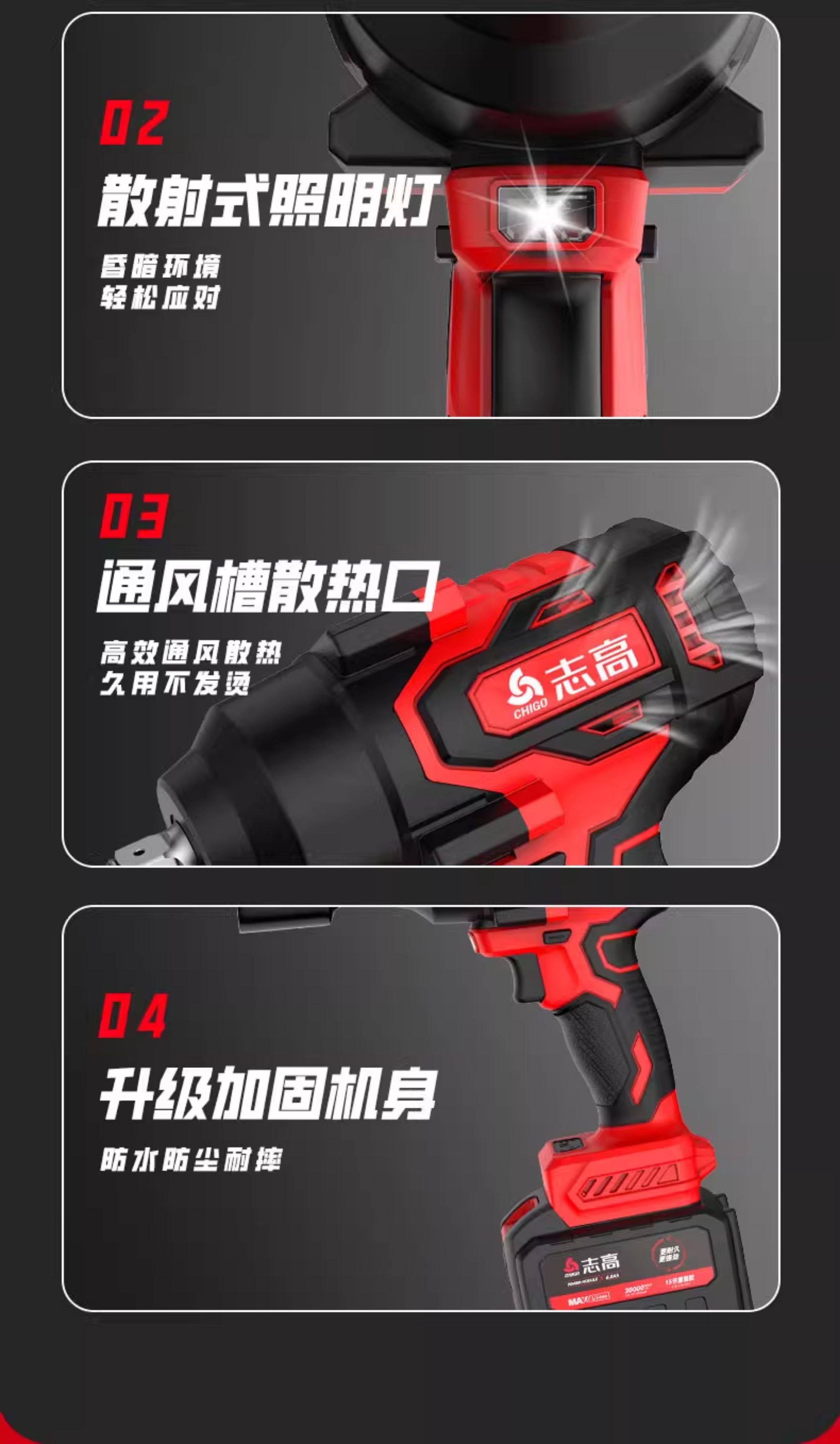 Chigo Electric Wrench, High Torque, Rechargeable, Impact-Specific, Auto Repair Lithium Battery Air Gun Tool, Electric Wrench