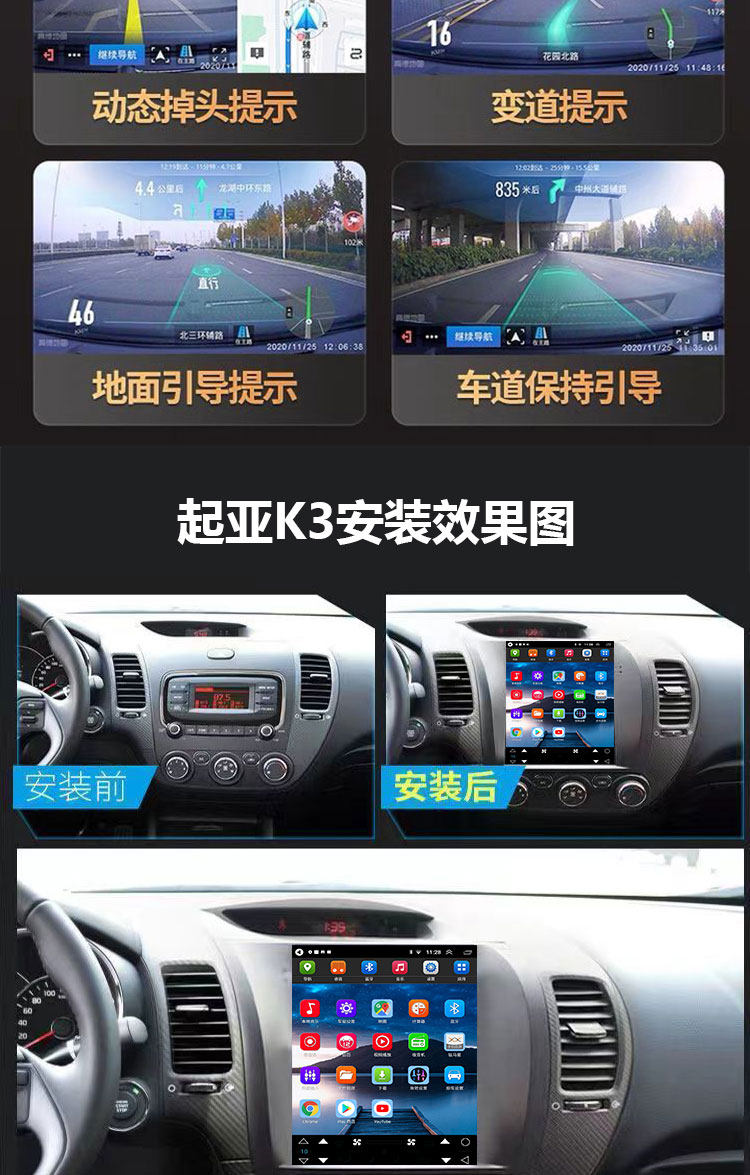 Suitable for Kia K3 Car's In-Car Central Control Display, Large Screen, Vertical Screen, Gps Navigation All-In-One Machine, Car Reversing Image