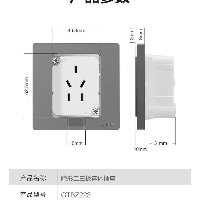 Bull Embedded Socket Refrigerator Built-In Five-Hole Hidden Invisible Socket Panel 86 Type Air Conditioner Special Five-Hole