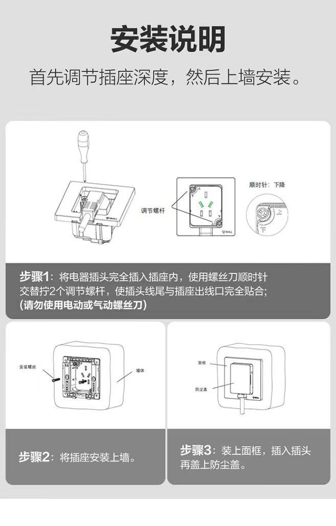 | Color Classification | 10A Five-Hole White (for Refrigerator Only)/,16A Three-Hole White (for Air Conditioners Only),10A Five-Hole Gray (for Refrigerator Only),16A Three-Hole Gray (for Air Conditioners Only)/,Silver Ground Spike,Ground Plug Gold |