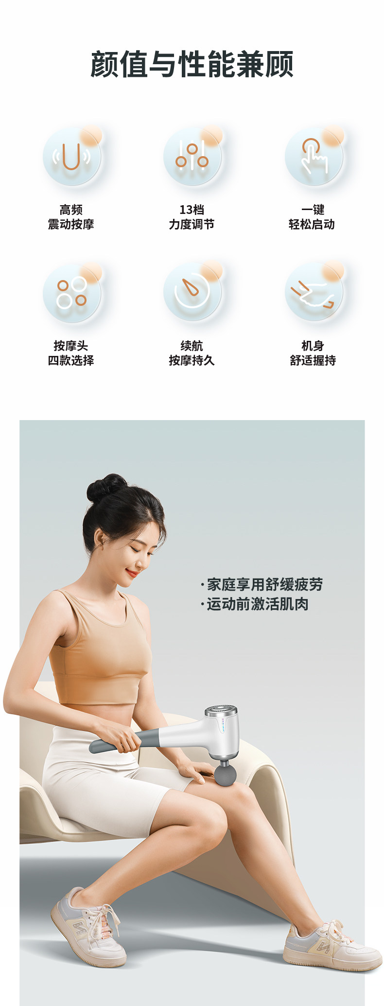 | Color Classification | ãMinimalist Whiteã4 Massage Heads + 13 Intensity Levels + High-Performance Brushless Motor + High-Rpm Deep Impact + Extended Curved Handle + Long-Lasting Battery Life + Color Box Packaging,ãSpace Grayã4 Massage Heads + 6 Intensity Levels + 3 Modes + High-Performance Brushless Motor + Boosted Variable Speed System + Ergonomic Curved Design + Long-Lasting Battery + Color Box Packaging |