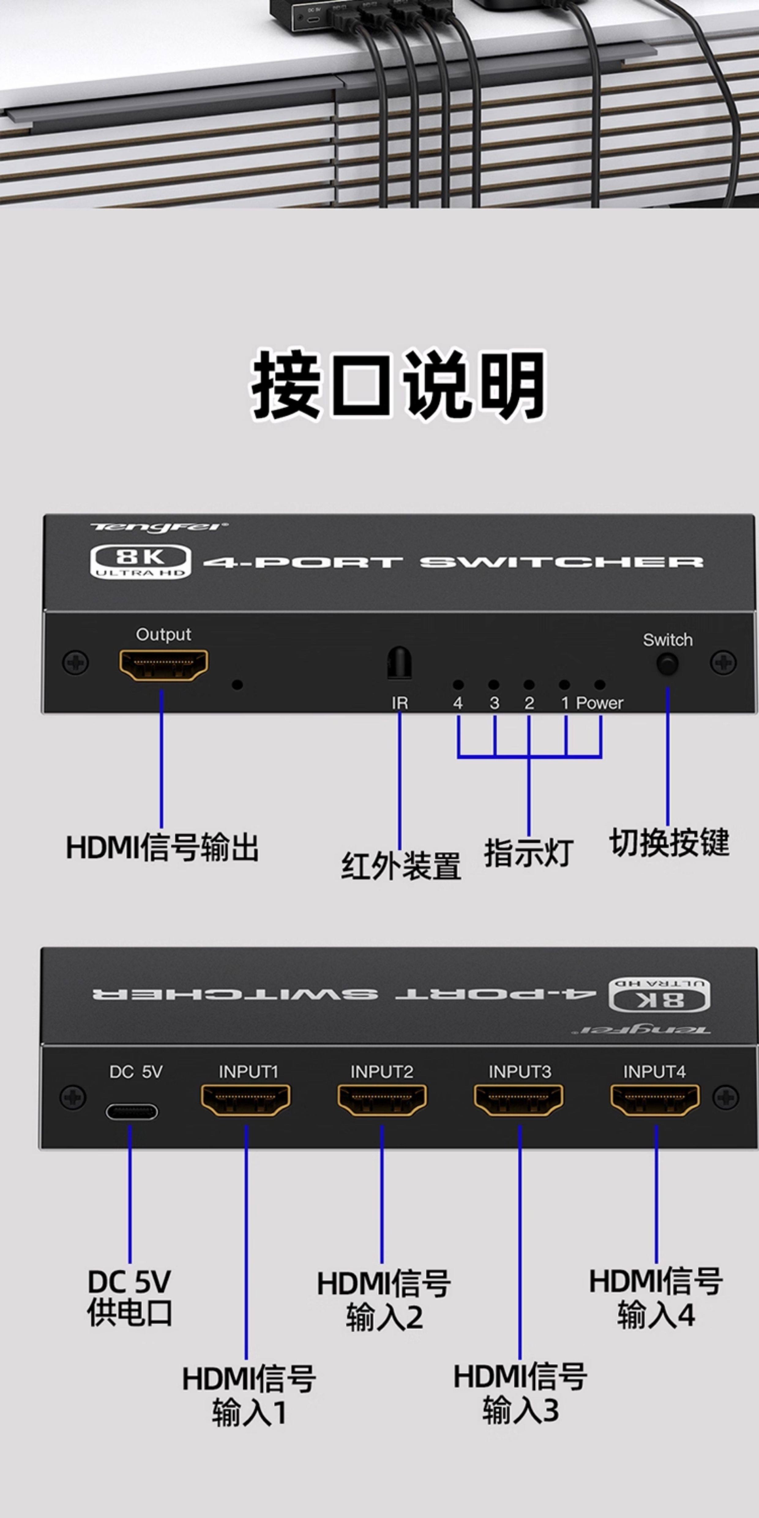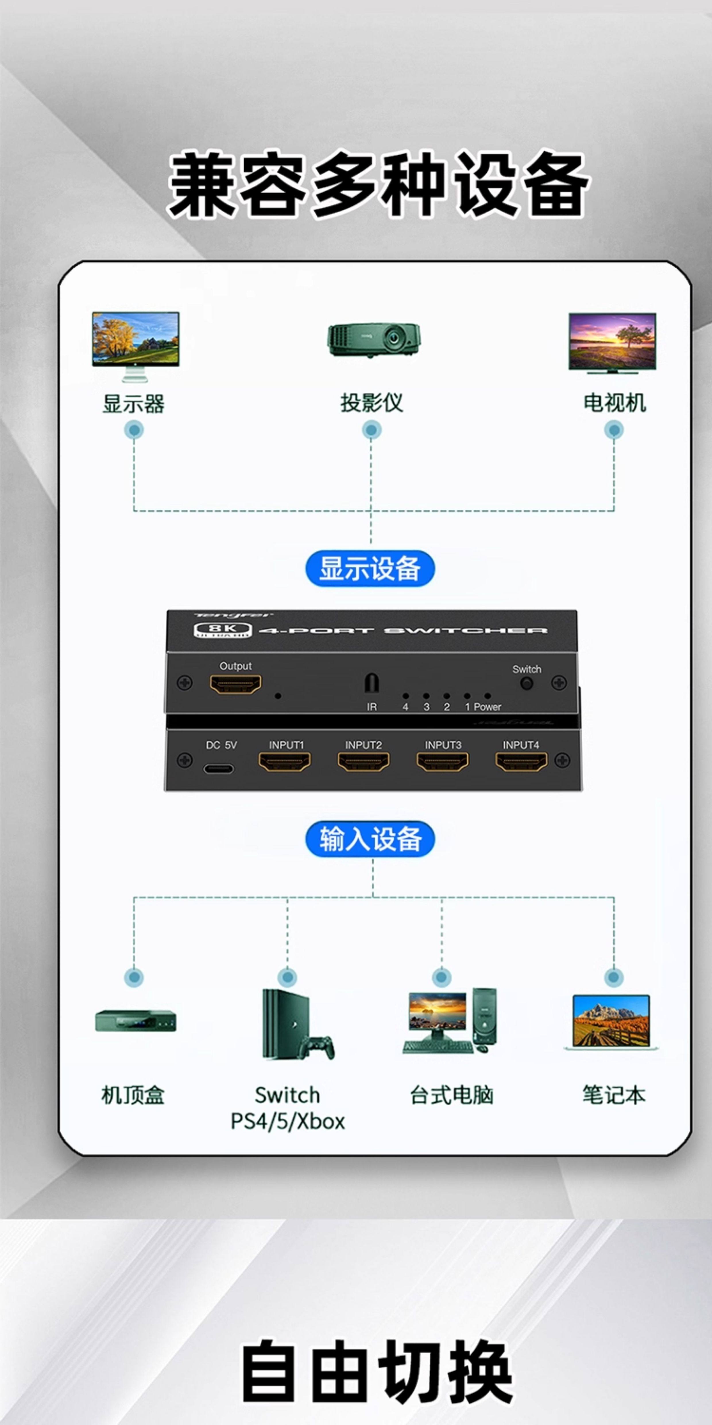 | Color Classification | HDMI 2.1 Version Four in and One Out,HDMI 2.0 Version Four in and One Out |