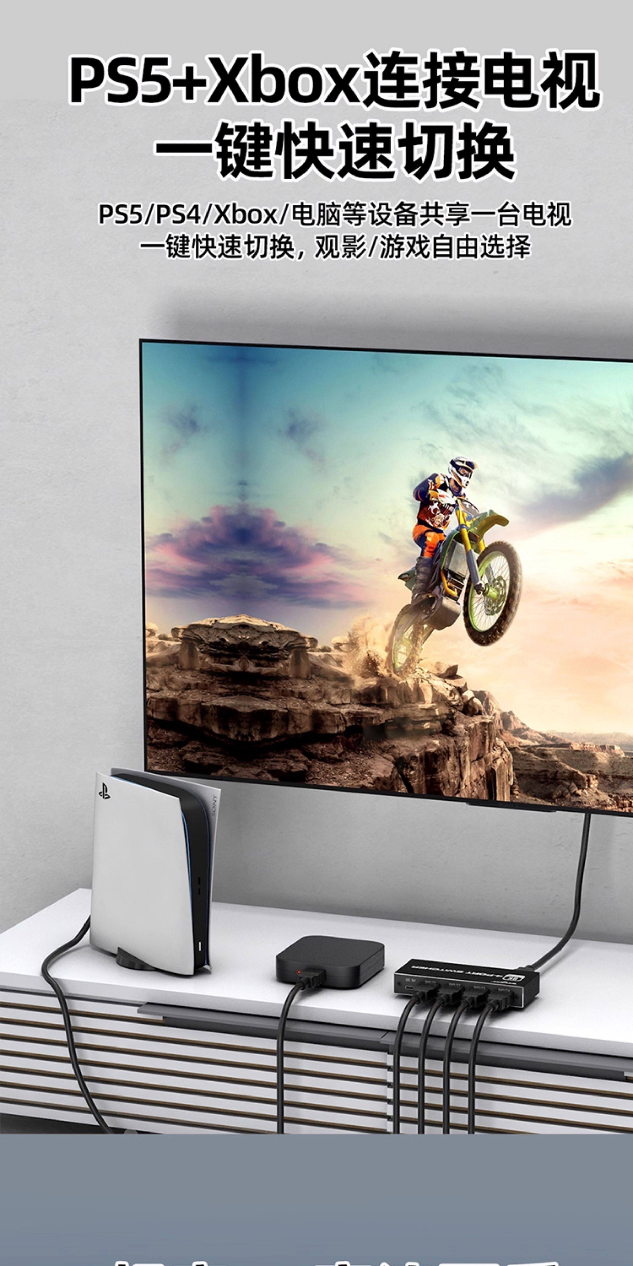 HDMI Switcher Four in One Out 8K@60Hz Version 2.1 Ps5/Xbox 5 in 1 Out Splitter Automatic Switching Vrr and Hdr10+ Ultra-Clear 4K@120Hz High Refresh Rate Cec Transparent Transmission