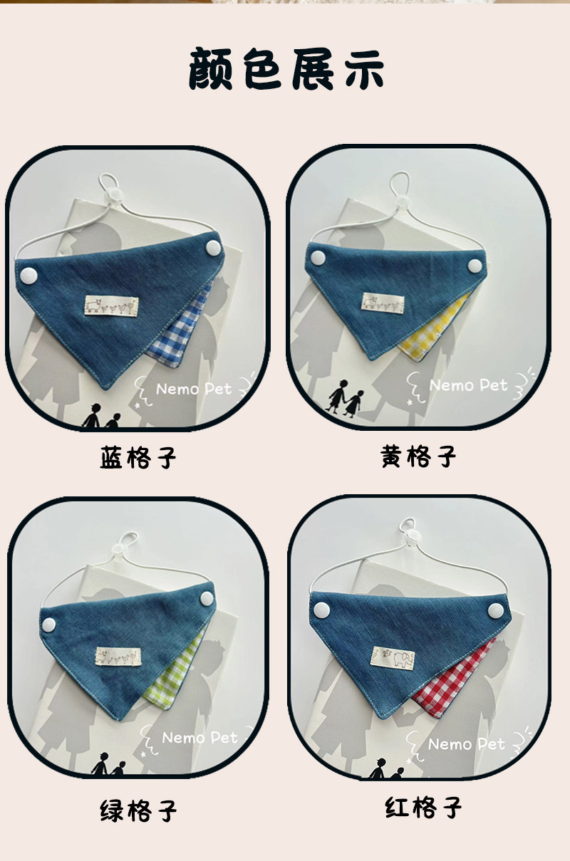 | Color Classification | Red Plaid Denim,Blue Plaid Denim,Yellow Plaid Denim,Green Plaid Denim,Blue Plaid + Red Plaid,Red Plaid + Green Plaid,Yellow Grid + Blue Grid,Yellow Grid + Green Grid,Blue Plaid + Green Plaid,Blue Plaid+Yellow Plaid+Red Plaid,Green Grid + Yellow Grid + Red Grid,Red Grid + Yellow Grid + Blue Grid,Yellow Grid + Blue Grid + Green Grid,Red Plaid + Blue Plaid + Yellow Plaid + Green Plaid,Dog Triangle Style,Dog Ruffle Style,Dog Triangle Style + Dog Ruffle Style,New Year's Collection |