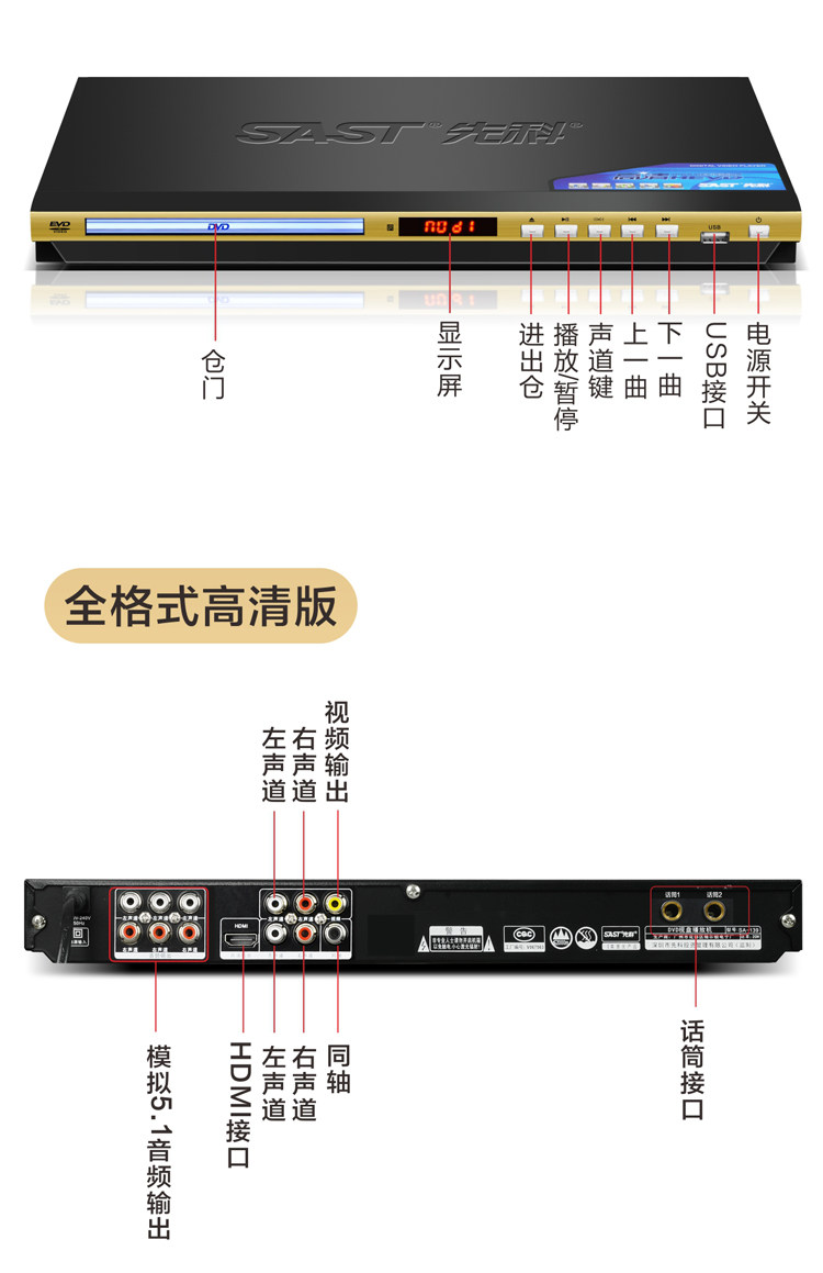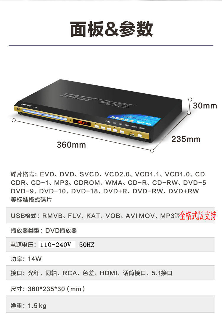 SAST 139 New Model Dvd Player High-Definition Evd Disc Player Bluetooth Optical Disc USB Flash Drive Cd Player