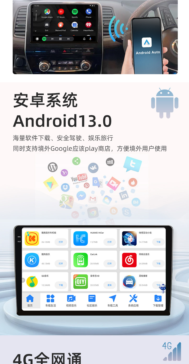 | Color Classification | 4-Core Wifi Version 2+32g,8-Core 4g Full Network Communication 2+32G/Dsp/Carplay/Hicar/Auto,8-Core 4g Full Network Communication 4+64G/Dsp/Carplay/Hicar/Auto,8-Core 4g Full Network Communication 4+32G/Dsp/Carplay/Hicar/Auto,8-Core 4g Full Network Communication 4+64G/Dsp/Carplay/Hicar/Auto,8-Core 4g Full Network Communication 6+128G/Dsp/Carplay/Hicar/Auto,8-Core 4g Full Network Communication 8+128G/Dsp/Carplay/Hicar/Auto,High-End 7862S Octa-Core Processor, 4g Lte Full Network Compatibility, 4Gb Ram + 32Gb Rom / 2K Display,High-End 7862S Octa-Core Processor, 4g Lte Full Network Compatibility, 4Gb Ram + 64Gb Rom / 2K Display,High-End 7862S Octa-Core Processor, 4g Lte Full Network Compatibility, 6Gb Ram + 128Gb Rom / 2K Display,High-End 7862S Octa-Core Processor, 4g Lte Full Network Compatibility, 8Gb Ram + 128Gb Rom / 2K Display,High-End 7862S Octa-Core Processor, 4g Lte Full Network Compatibility, 8Gb Ram + 256Gb Rom / 2K Display,13.1inch Mid-Range 8581A 8-Core 4g Full Network 2+32g 2K Screen,13.1inch Mid-Range 8581A 8-Core 4g Full Network 4+64g 2K Screen,13.1inch 8-Core 4g Full Network 4+32g 2K Screen Mid-Range 7862S,13.1inch High-End 7862S 8-Core 4g Full Network 4+64g 2K Screen,13.1inch High-End 7862S 8-Core 4g Full Network 8+128g 2K Screen,13.1inch High-End 7862S 8-Core 4g Full Network 8+256g 2K Screen,7870S Top Configuration 8-Core 6+128G/2K Screen,7870S Top Configuration 8-Core 12+256G/2K Screen,7870S Top Configuration 13.1inch 8-Core 6+128G/2K Screen,7870S Top Configuration 13.1inch 8-Core 12+256G/2K Screen |