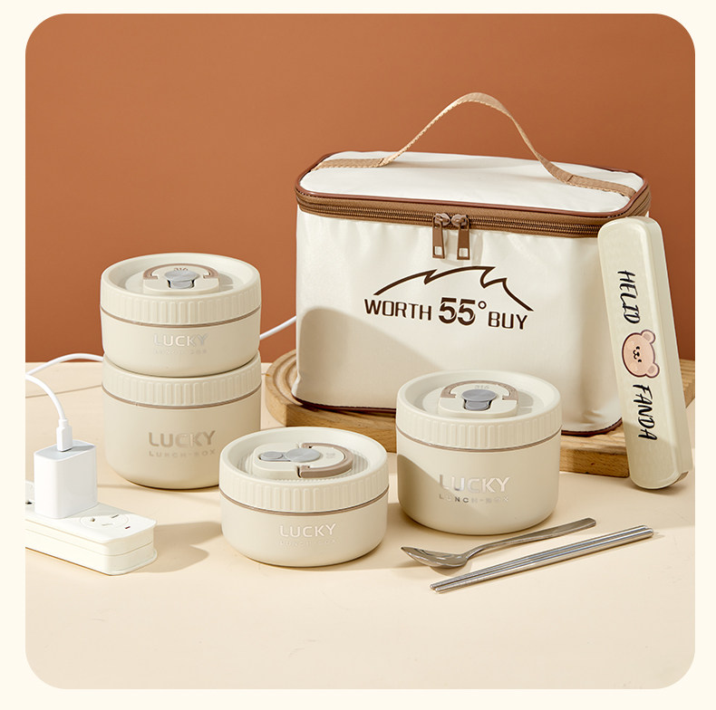 24-Hour Ultra-Long-Lasting Insulated Lunch Box Bucket, Rechargeable and Plug-In, Constant Temperature Bag, Stainless Steel, Microwave Heating for Office Workers