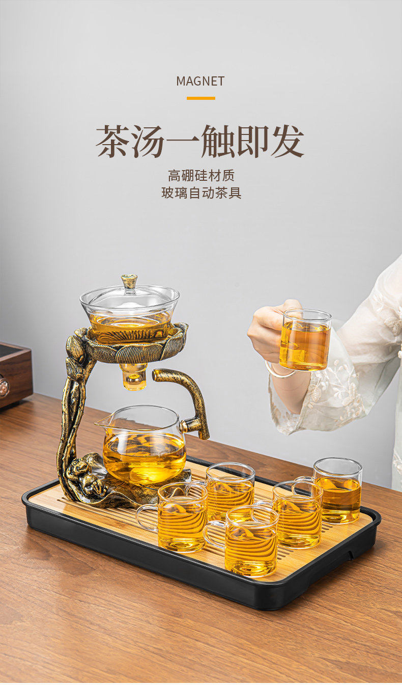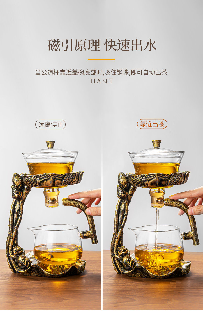 New Glass Magnetic Automatic Tea Set for Home and Office, a Convenient Tea Brewing Tool for Lazy People, Complete Tea Brewing Tools