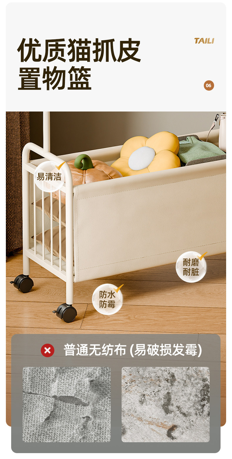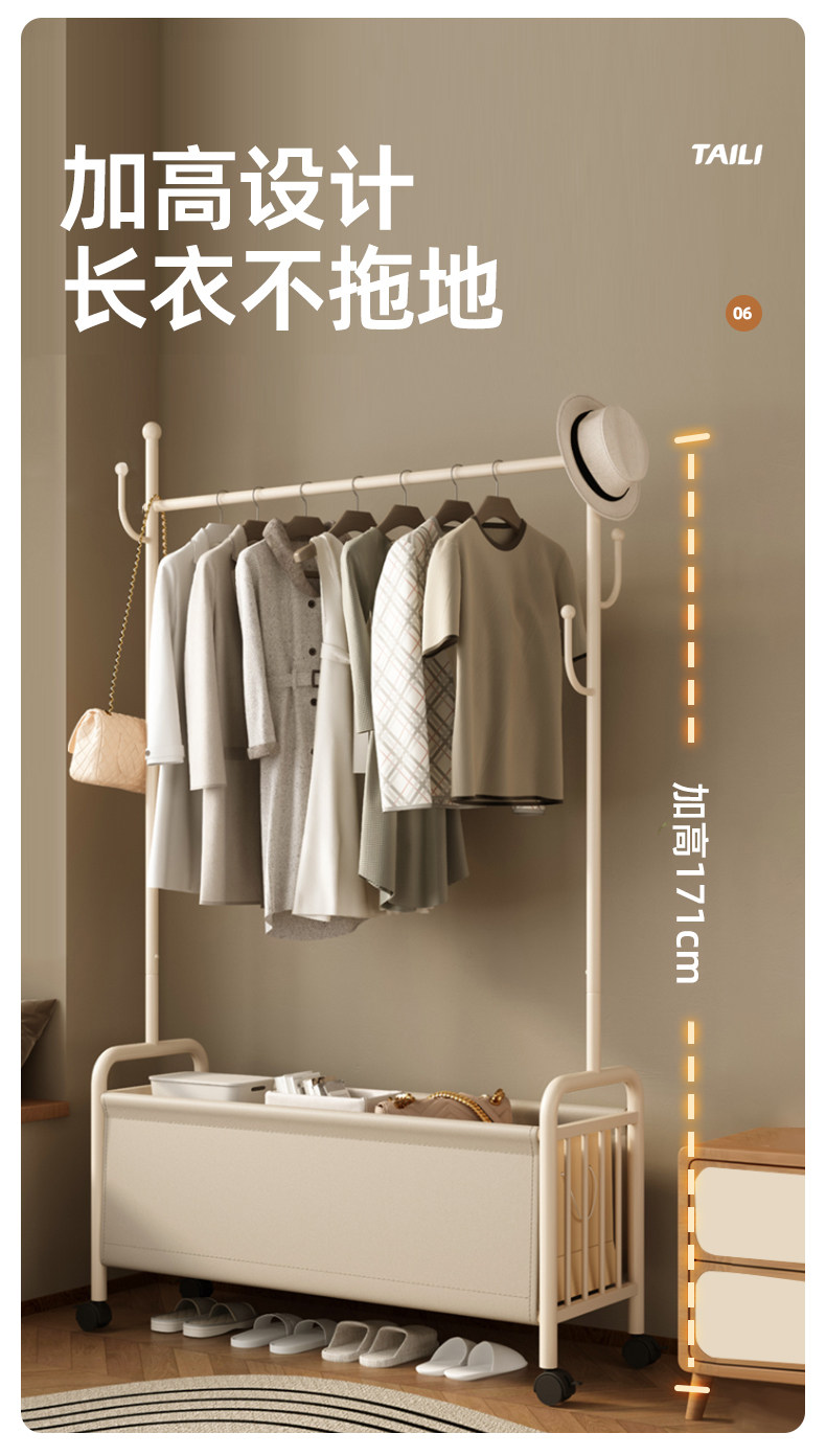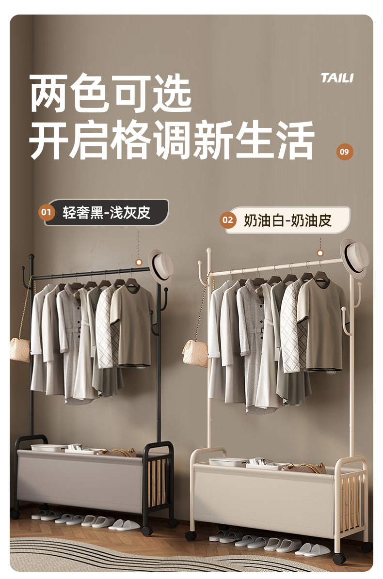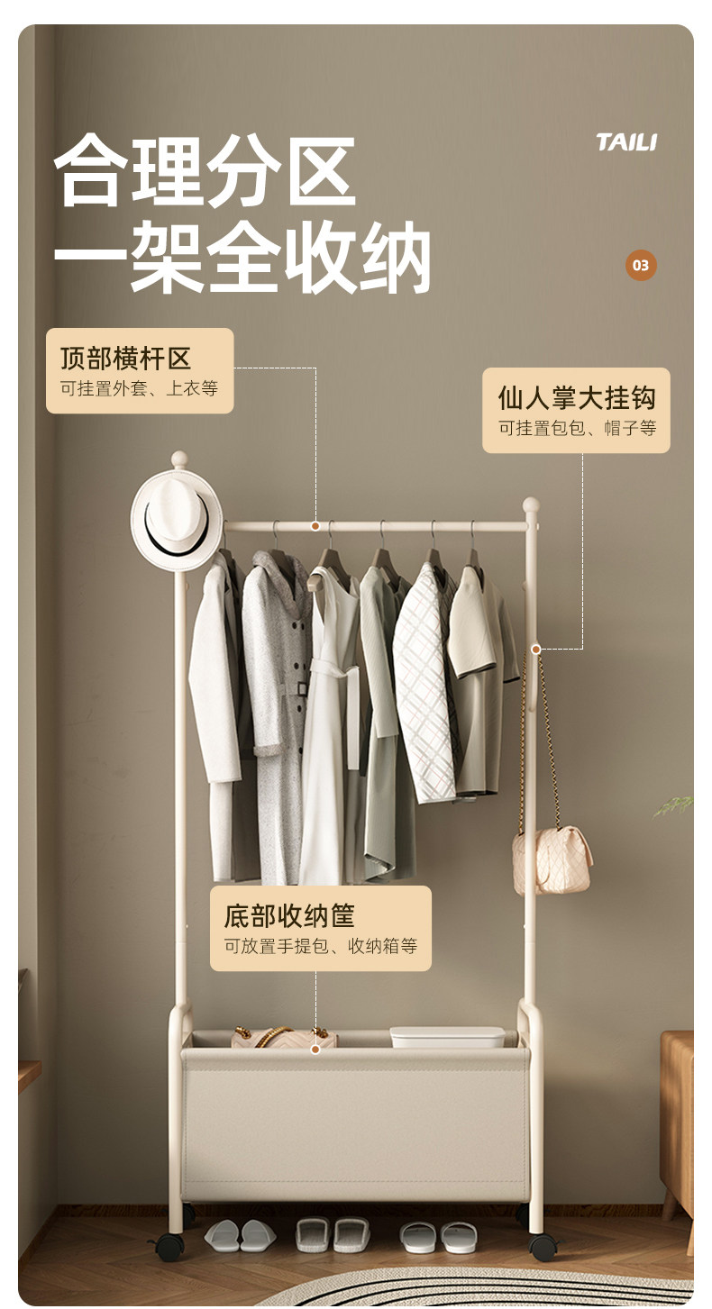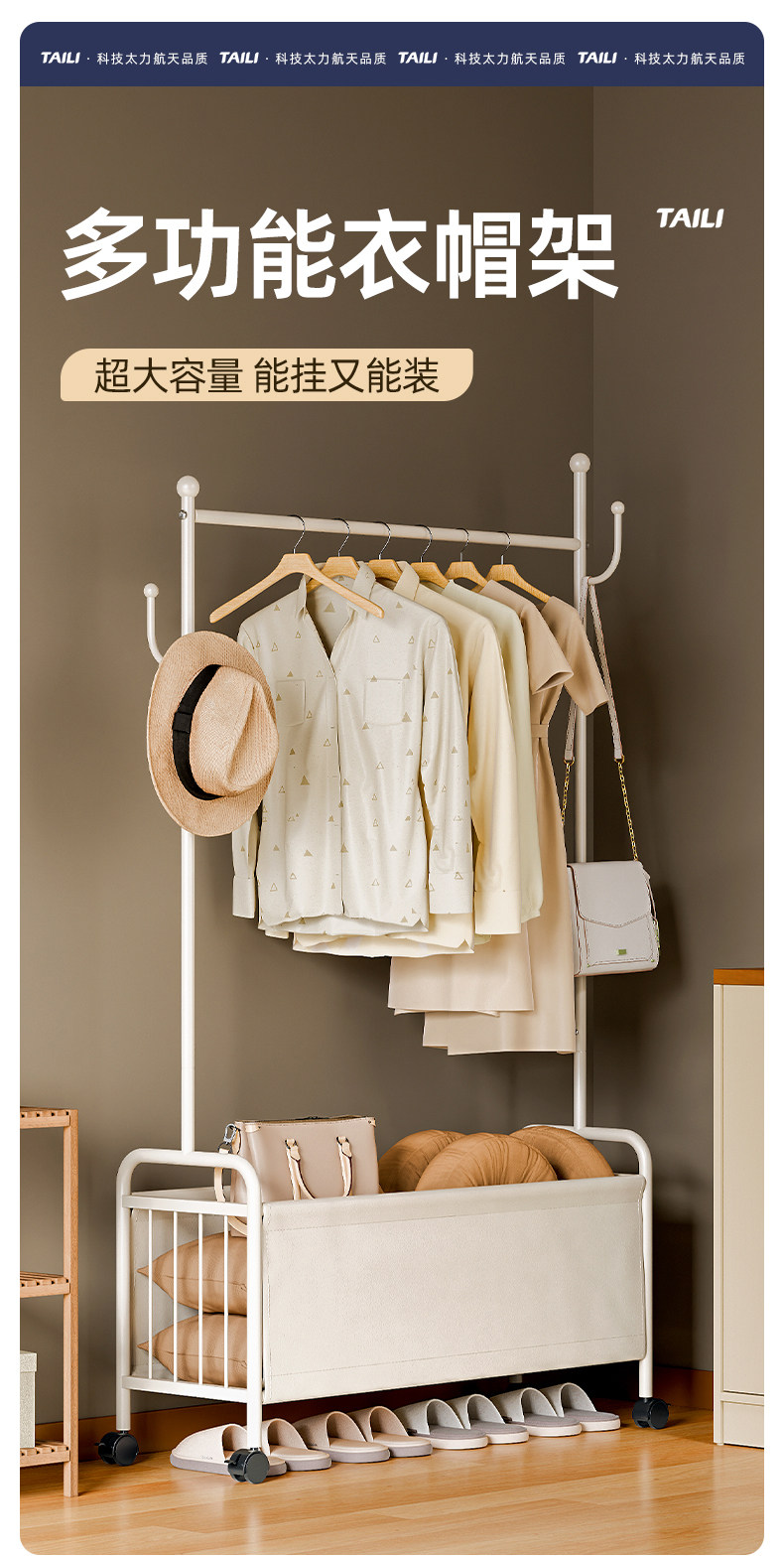 Taili Floor-Standing Clothes Rack for Bedroom, Indoor Double-Rod Clothes Hanger for Hanging Clothes and Bags, Multifunctional Drying Rack, Coat Rack