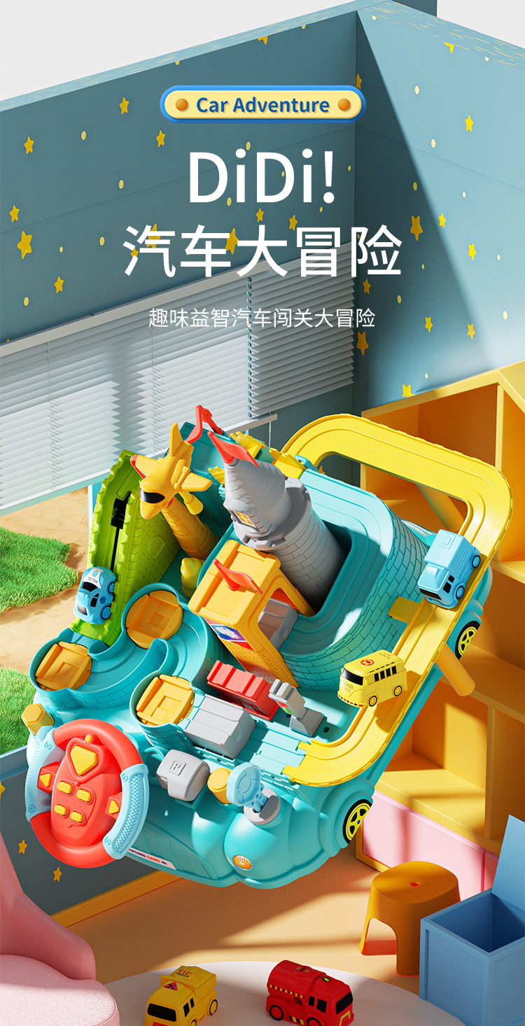 Children's Car Adventure Track Car Sliding Puzzle Transportation Family Toy Small Train for Boys Aged 1-3