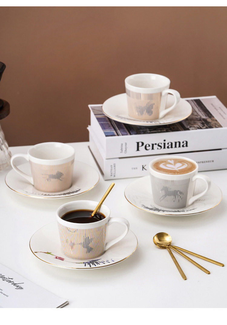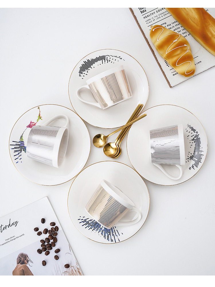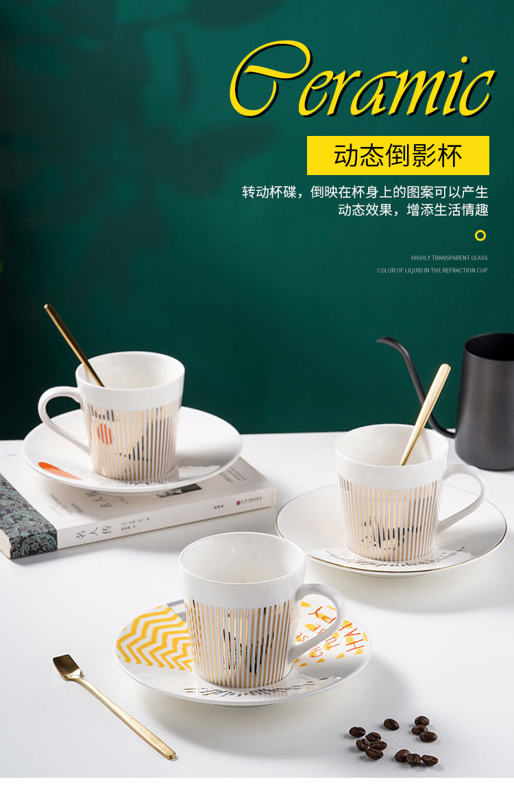 Dynamic Reflection Mirror Cup, High-End Mug, Personalized Creative Ceramic Afternoon Tea Coffee Cup and Saucer, Ceramic Water Cup