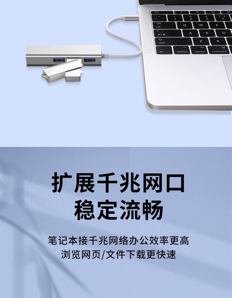 Type-C Docking Station to Gigabit Network Port Converter Usb3.0 Plug Expansion Multi-Functional Wired Laptop 100m Network Cable Desktop External Hub Laptop Tablet Rj45