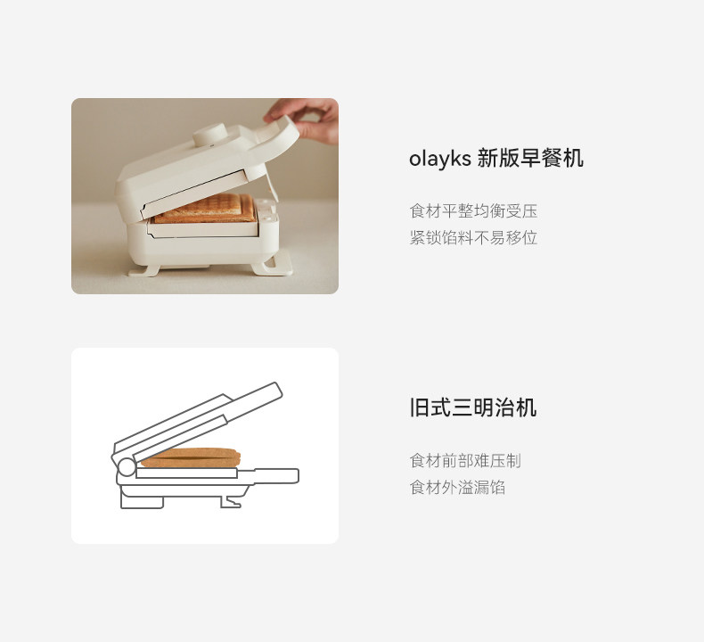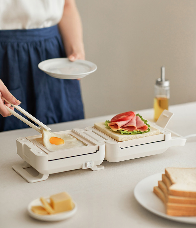 Olayks Instant Sandwich Maker, Thick-Press Timed Breakfast Machine, Multifunctional Waffle Toaster Bread Maker for Home Use