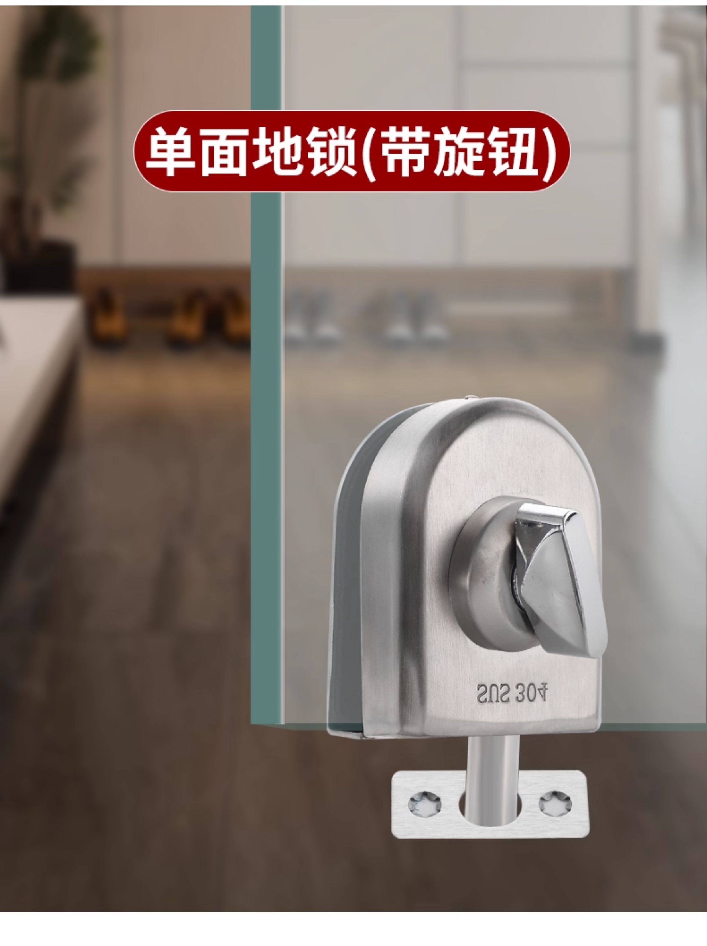 Glass Door Lock, Double Door, Single Door, No-Drill Glass Lock, Floor Lock, Shop Sliding Double Door Lock, Latch, Frameless Lock