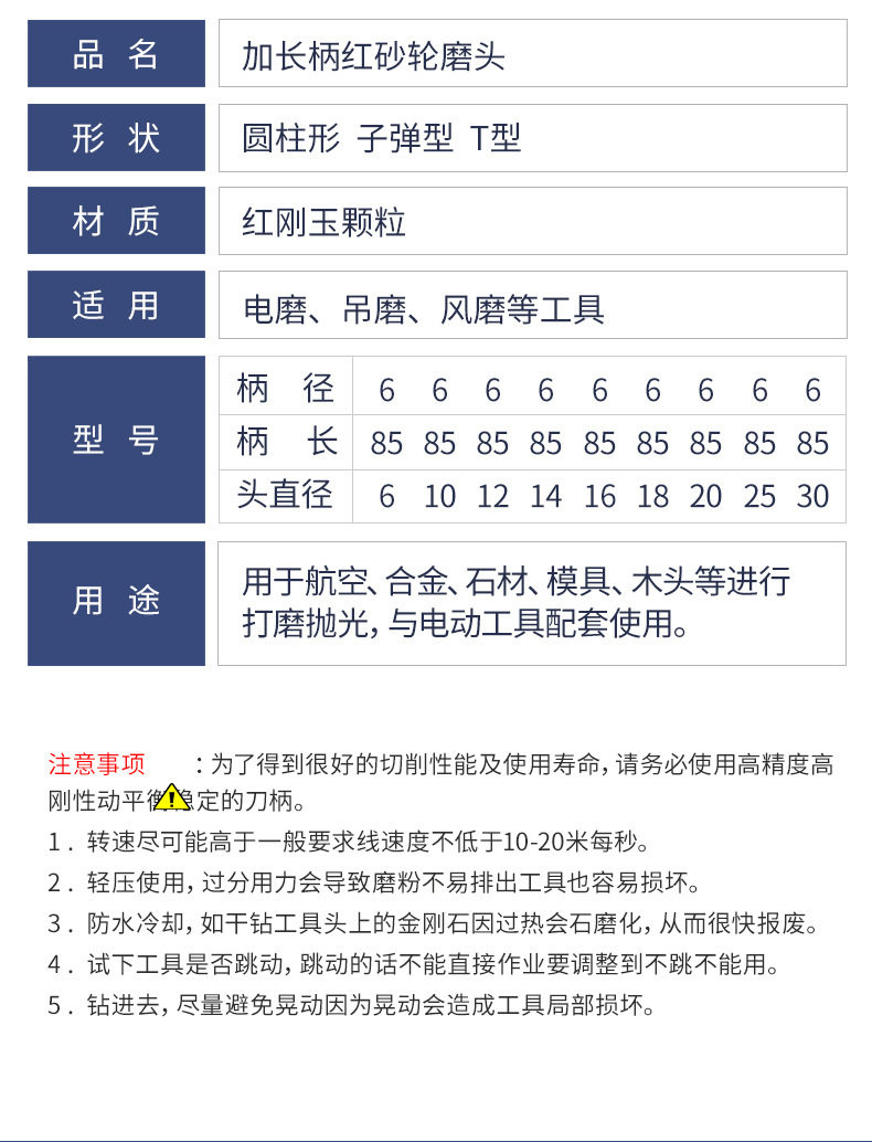 85mm Long Handle Grinding Wheel Head, 6mm Flint Ceramic Grinding Head, Cylindrical Bullet-Shaped Extended Rod for Grinding and Polishing