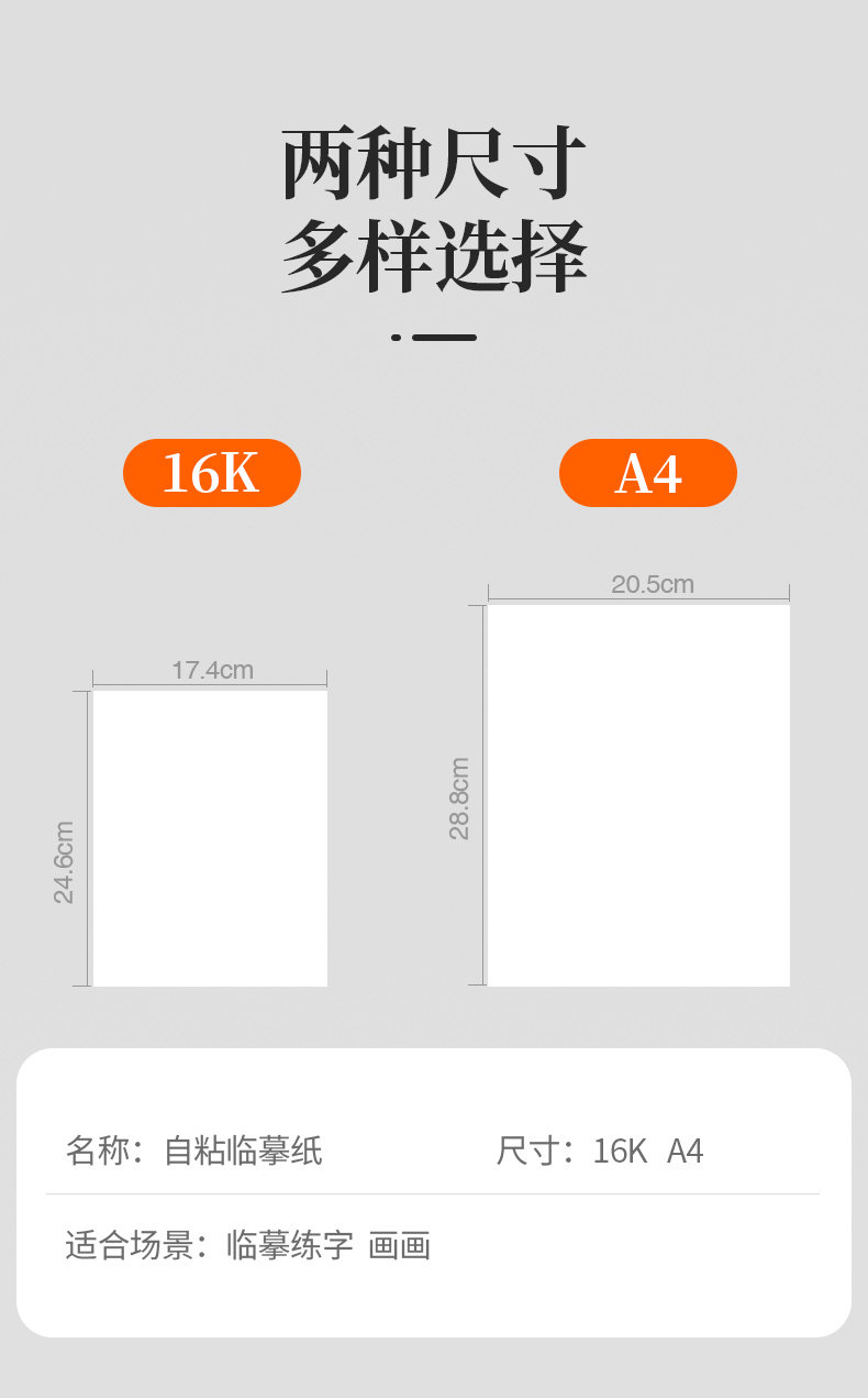 | Color Classification | 16K Self-Adhesive Tracing Paper 100 Sheets,A4 Self-Adhesive Tracing Paper 100 Sheets,16K Self-Adhesive Tracing Paper 250 Sheets,16K Self-Adhesive Tracing Paper 300 Sheets,A4 Self-Adhesive Tracing Paper 300 Sheets,16K Self-Adhesive Tracing Paper 500 Sheets,A4 Self-Adhesive Tracing Paper 500 Sheets |