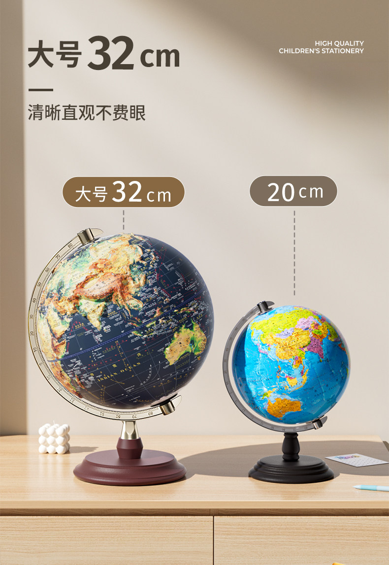 | Color Classification | Global Political Divisions + Topographyâ Terrain and Administrative Divisions Combined into One,ãSize SelectionãLarge Size Is Suitable for Students to Use as Decorative Ornaments or for Teaching Purposes; Small Size Is Suitable for Students to Use as Decorations in Children's Rooms,[Uneven Terrain Visible to the Naked Eye] 20cm/360°Rotating/Rechargeable Three-Level Light/Wooden Base,[Uneven Terrain Visible to the Naked Eye] 20cm/720°Rotating/Rechargeable Three-Level Light/Wooden Base,[the Uneven Terrain Is Visible to the Naked Eye] 32cm/360°Rotating/Rechargeable Three-Level Light/Wooden Base,[the Uneven Terrain Is Visible to the Naked Eye] 32cm/720°Universal/Rechargeable Three-Level Light/Wooden Base,[the Uneven Terrain Is Visible to the Naked Eye] 32cm/720°Universal/Rechargeable Three-Speed ââConstellation Lamp/Wooden Base,Upgraded Metal Base Globe with High-Relief Design,[Uneven Terrain Visible to the Naked Eye] 20cm/360°Rotating/Rechargeable Three-Level Light/Metal Base,[Uneven Terrain Visible to the Naked Eye] 20cm/720°Rotating/Rechargeable Three-Level Light/Metal Base,[the Uneven Terrain Is Visible to the Naked Eye] 32cm/360 ° Rotating/Rechargeable Three-Level Light/Metal Base,[the Uneven Terrain Is Visible to the Naked Eye] 32cm/720°Universal/Rechargeable Three-Level Light/Metal Base,[the Uneven Terrain Is Visible to the Naked Eye] 32cm/720°Universal/Rechargeable Three-Speed ââConstellation Light/Metal Base,All Core Elements Are Fully Equippedâ Meet the Needs of Geography Learning |
