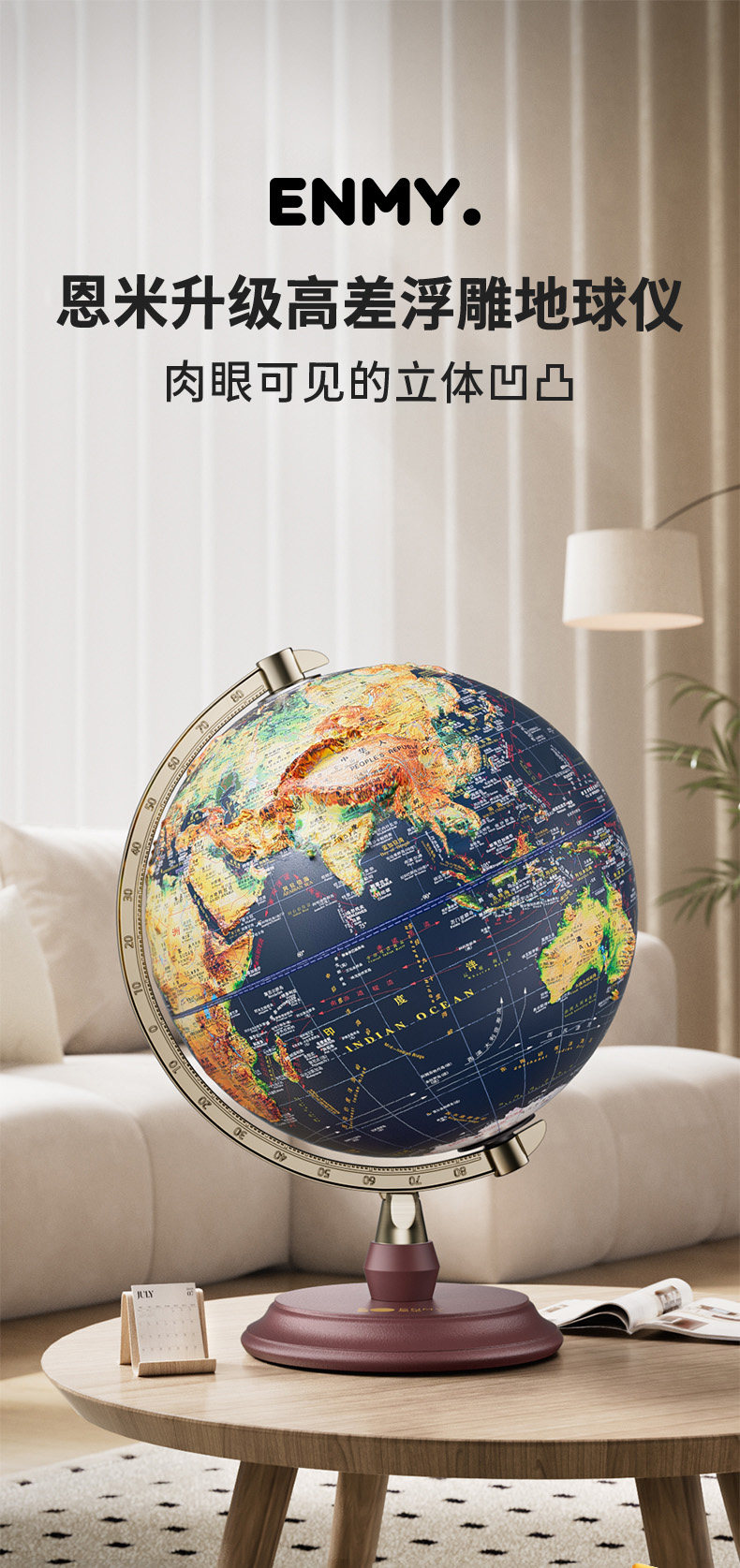 Enmi 3D Globe, Extra Large 32cm with Relief, Authentic, for Elementary and Middle School Students, Universal Terrain Model, Living Room Decoration, Ar Children's Smart Globe, Birthday Gift for Boys and Girls