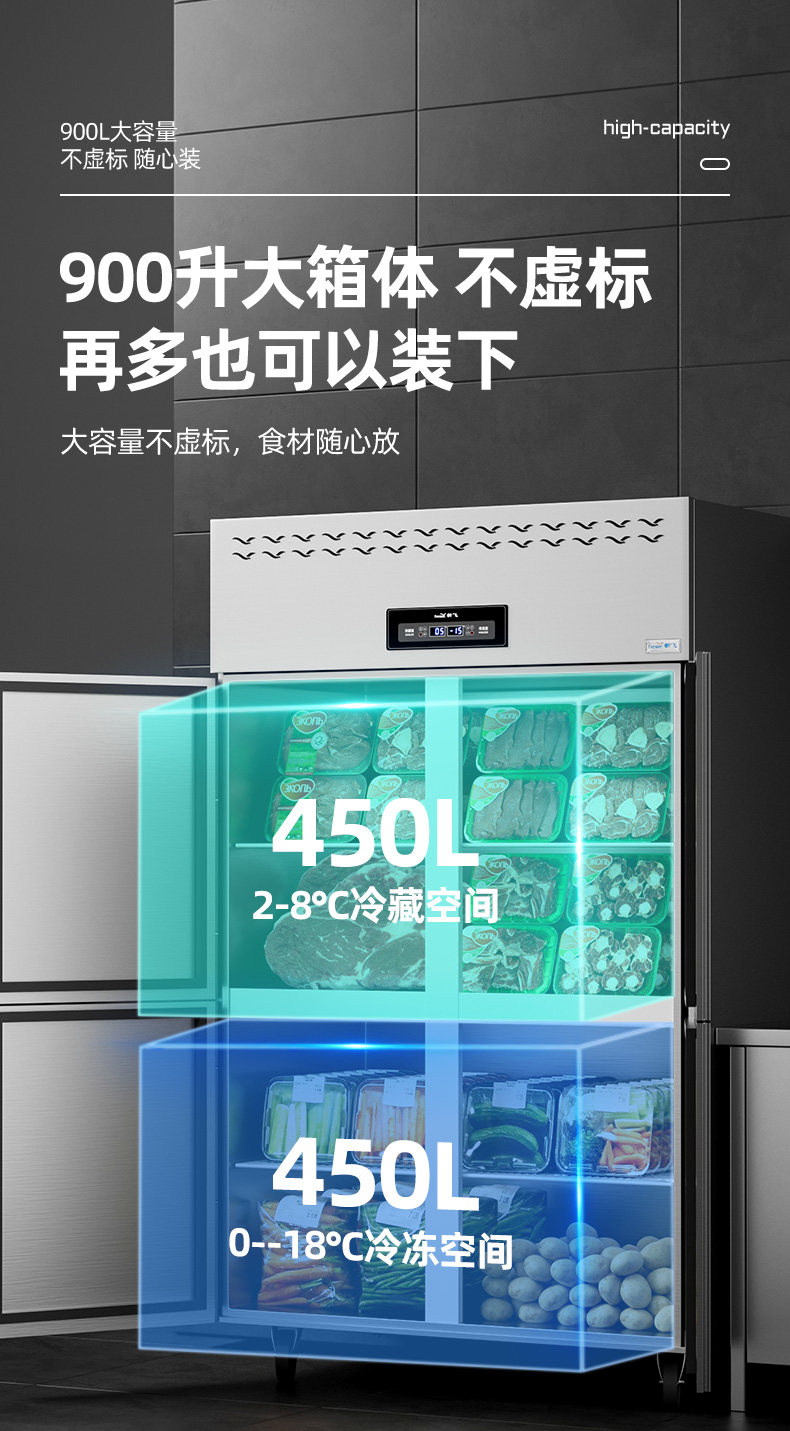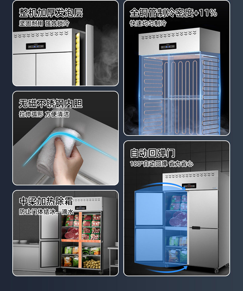 Xinfei Four-Door Refrigerator Commercial Dual-Temperature Kitchen Refrigeration and Freezing Four-Door Freezer Vertical Large-Capacity Six-Door Freezer